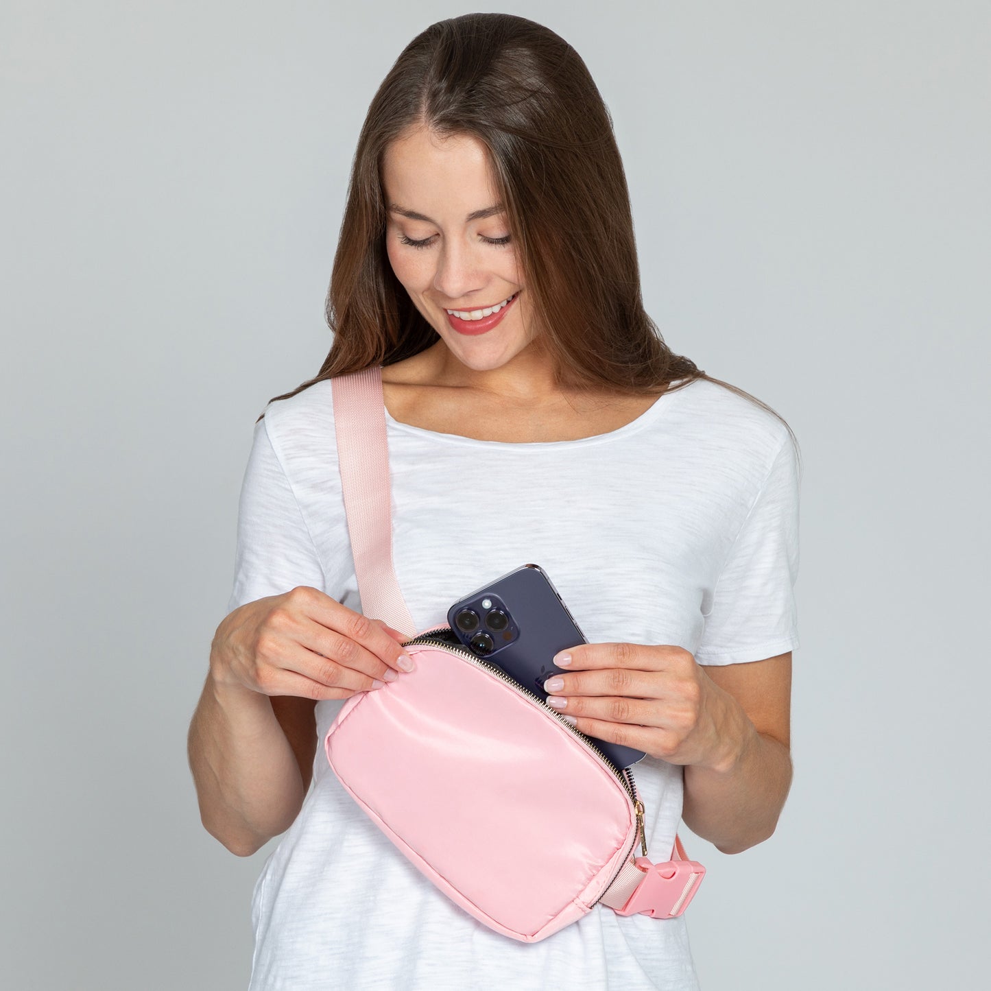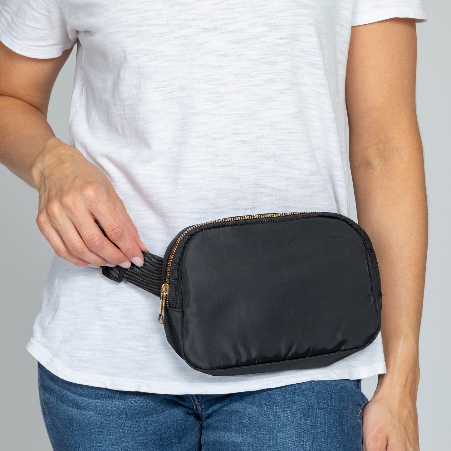 Take convenience and style with you wherever you go with this "On the Go Belt Bag." The adjustable strap ensures a comfortable fit, while the multiple pockets allow for easy organization. This small but mighty belt bag is the perfect accessory for all your adventures.