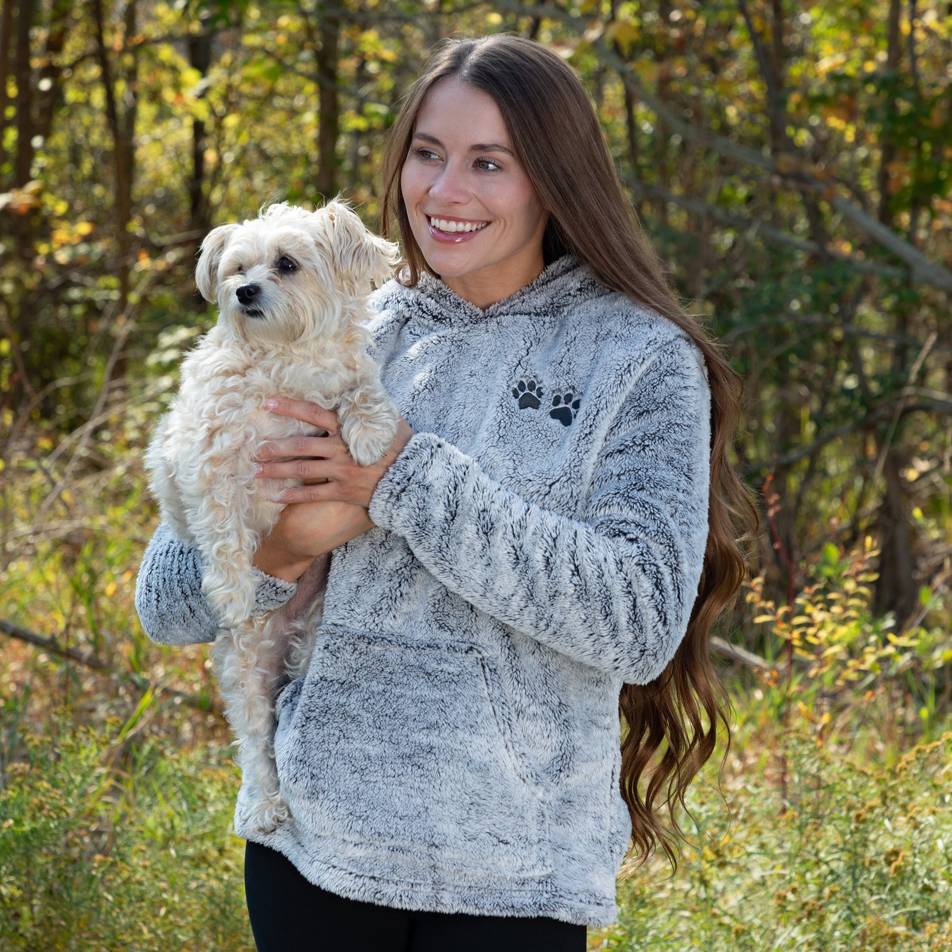 Embroidered Paws Pullover Fleece Hoodie