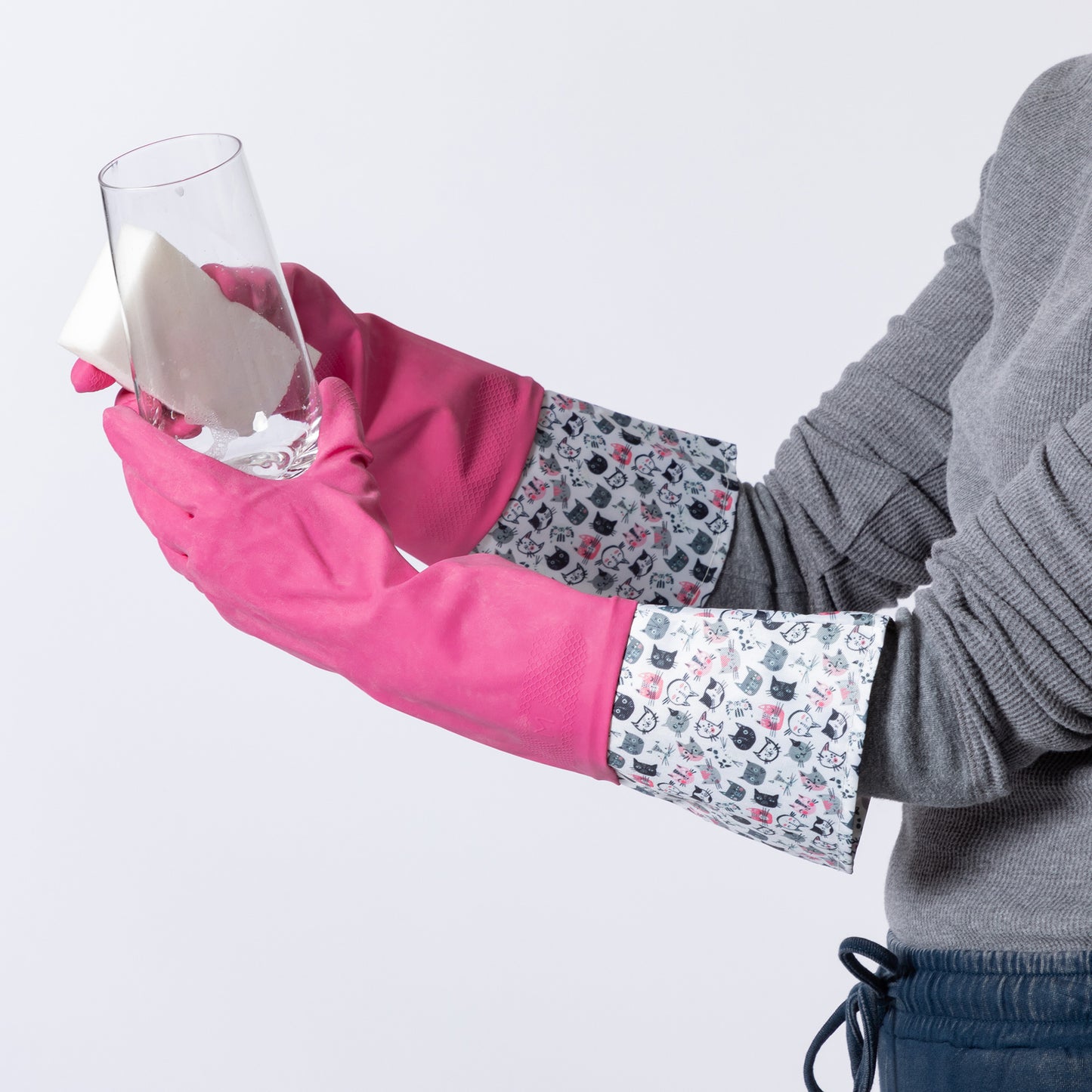 Make kitchen chores more fun with these adorable dish gloves! Crafted from durable pink latex, these gloves offer protection while adding a playful touch to your routine. The cuffs feature a charming pattern of cute cat faces, making them as stylish as they are practical. Perfect for cat lovers who want to add a dash of whimsy to their dishwashing duties!