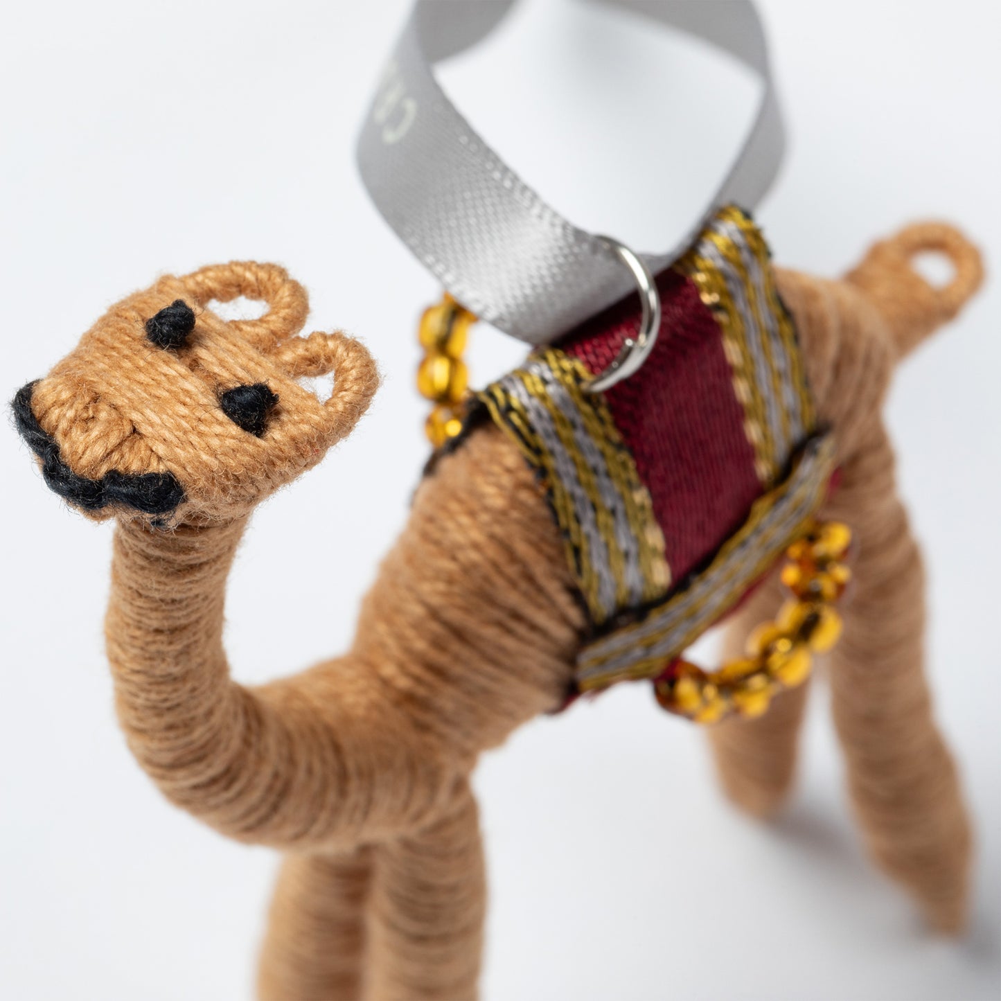 Packaging reads: "Crafted by Syrian refugee women living in Jordan. The camel is known for its incredible endurance and strength, essential characteristics for surviving the hardship of desert life. For centuries, the camel served as a valuable mode of travel."