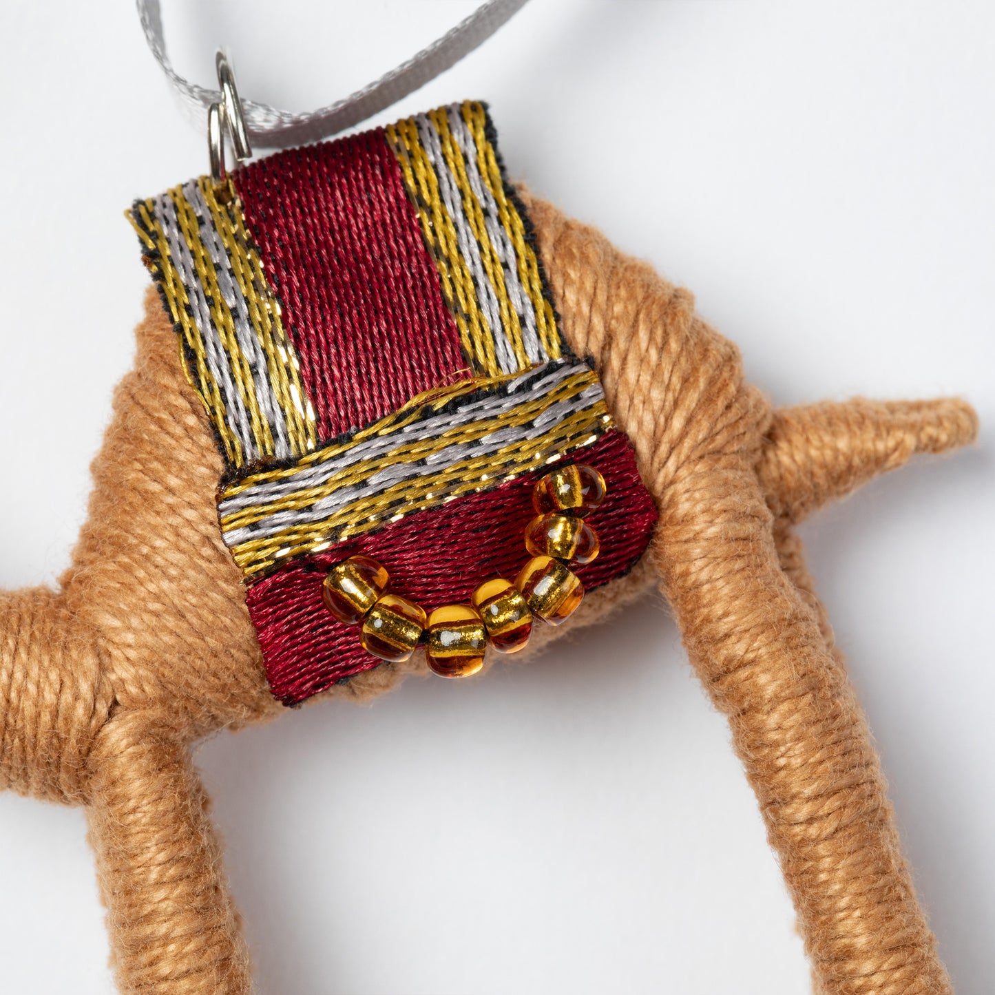 Bring a touch of warmth and tradition to your holiday decor with this unique camel ornament, stunningly handmade by refugee women in Jordan. Crafted with care and wrapped in delicate threads, each camel features intricate details and a touch of vibrant color, symbolizing resilience and hope. By adding this ornament to your collection, you’re supporting artisans and empowering women, creating a meaningful impact with every purchase.