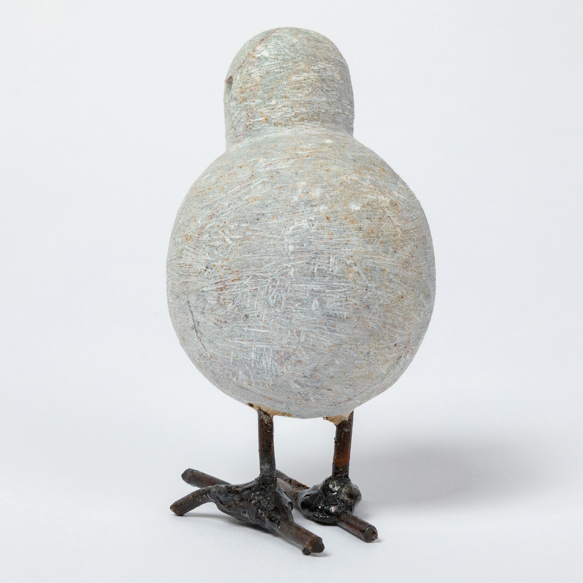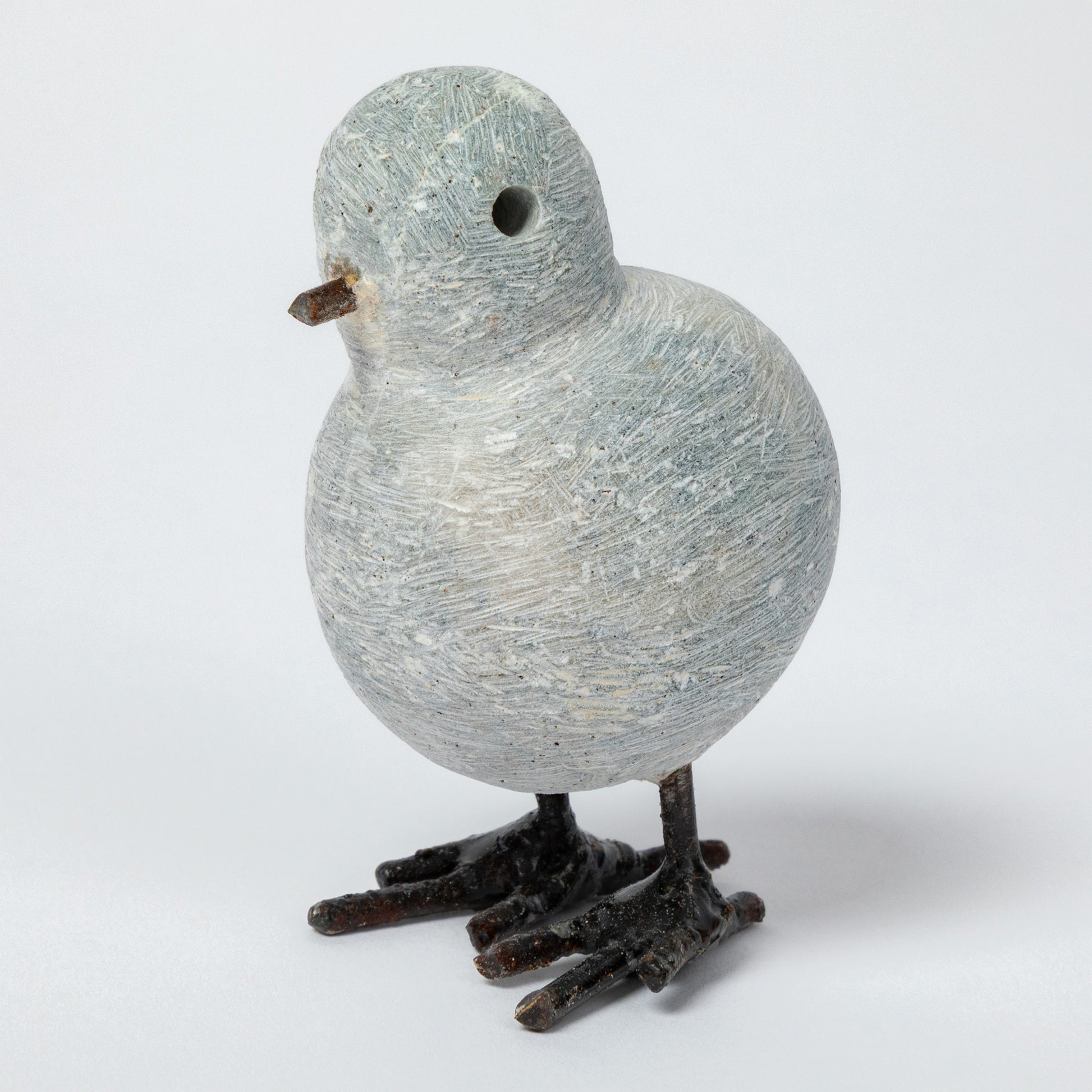 Hand-Carved Serpentine Stone & Metal Chickadee Figurine