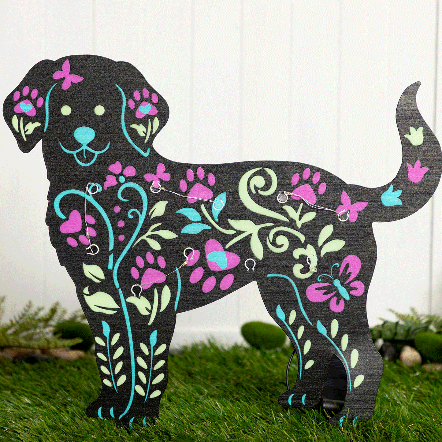 Brighten up your garden with these solar-powered pet silhouette garden stakes. Featuring colorful floral designs in the shape of a cat or dog, they soak up sunlight during the day and glow beautifully at night. A charming way to add personality and light to any outdoor space.