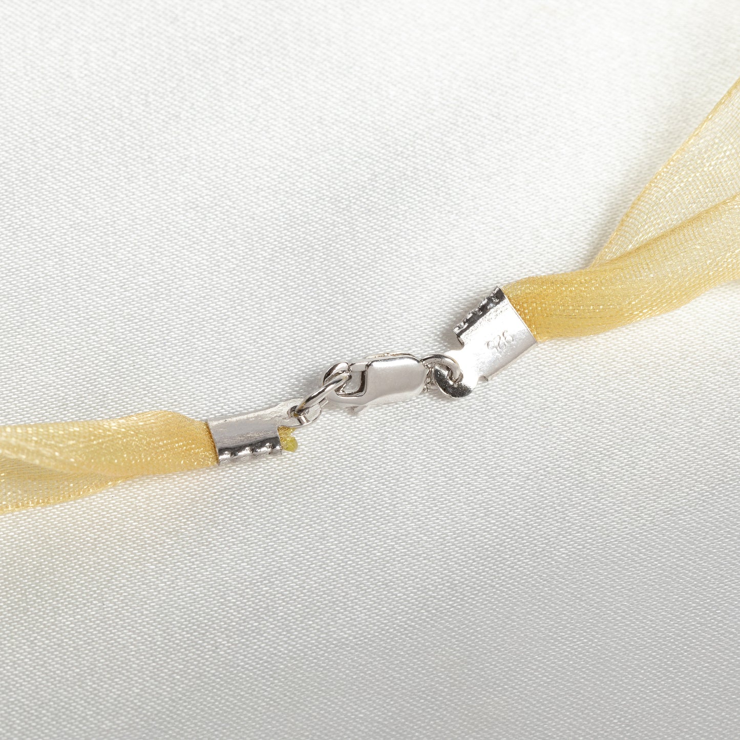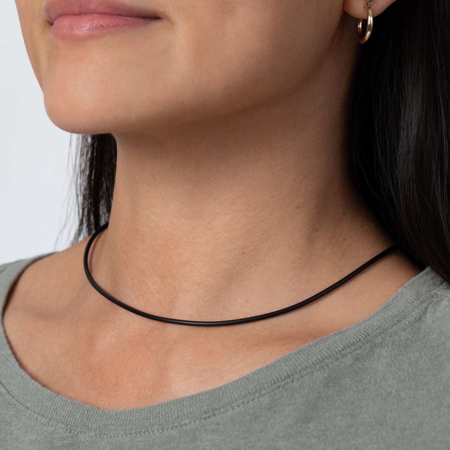 - Rubber, polyester cord, stainless steel, gold-filled metal, or organza ribbon