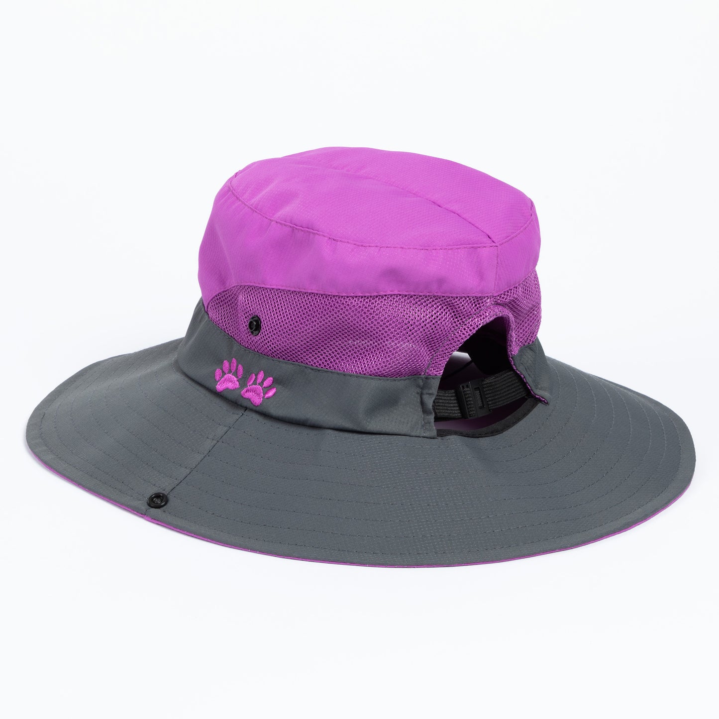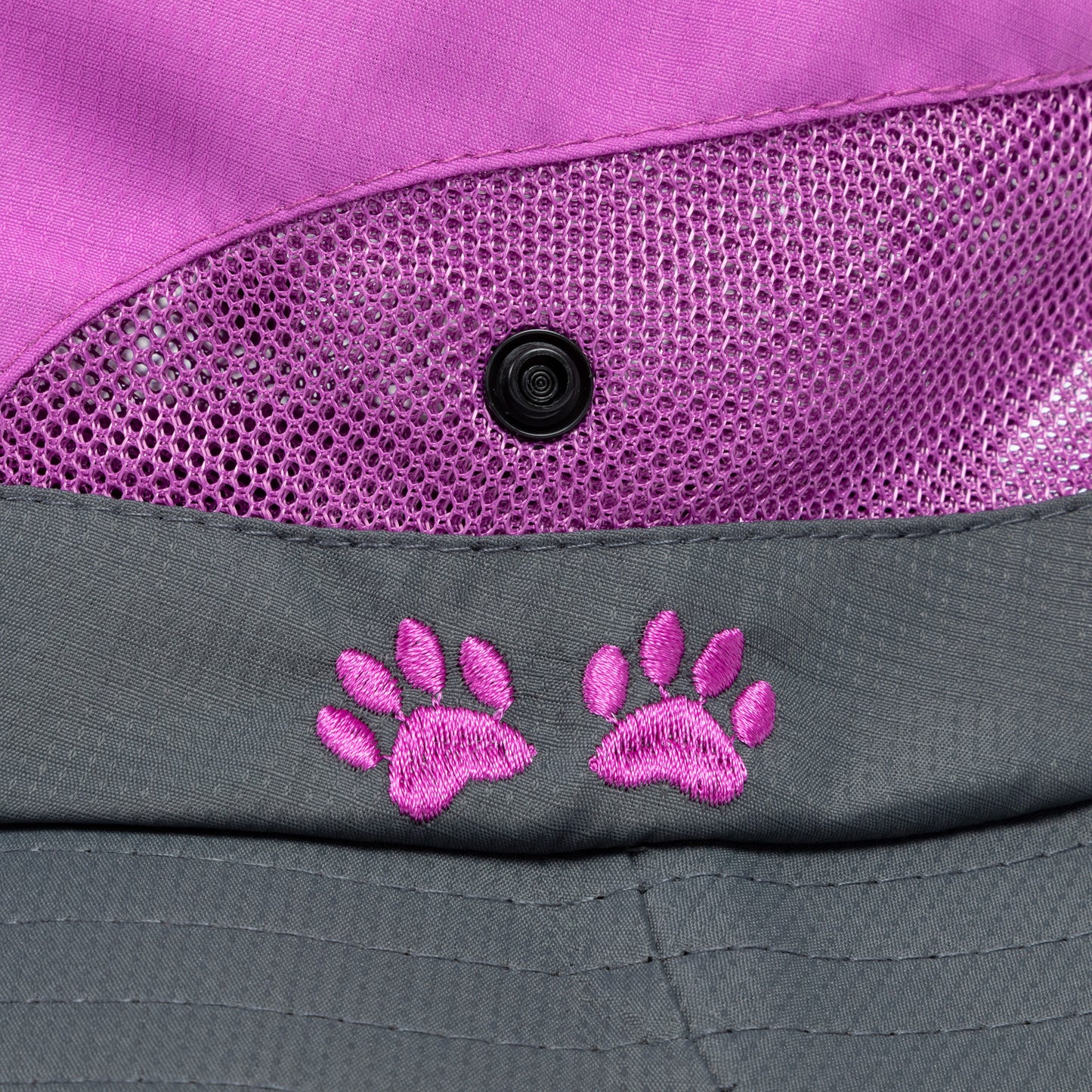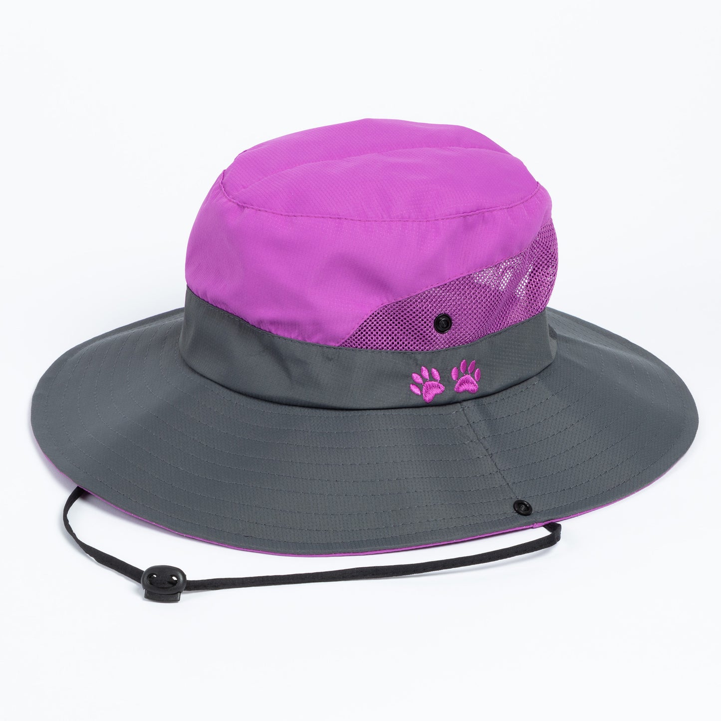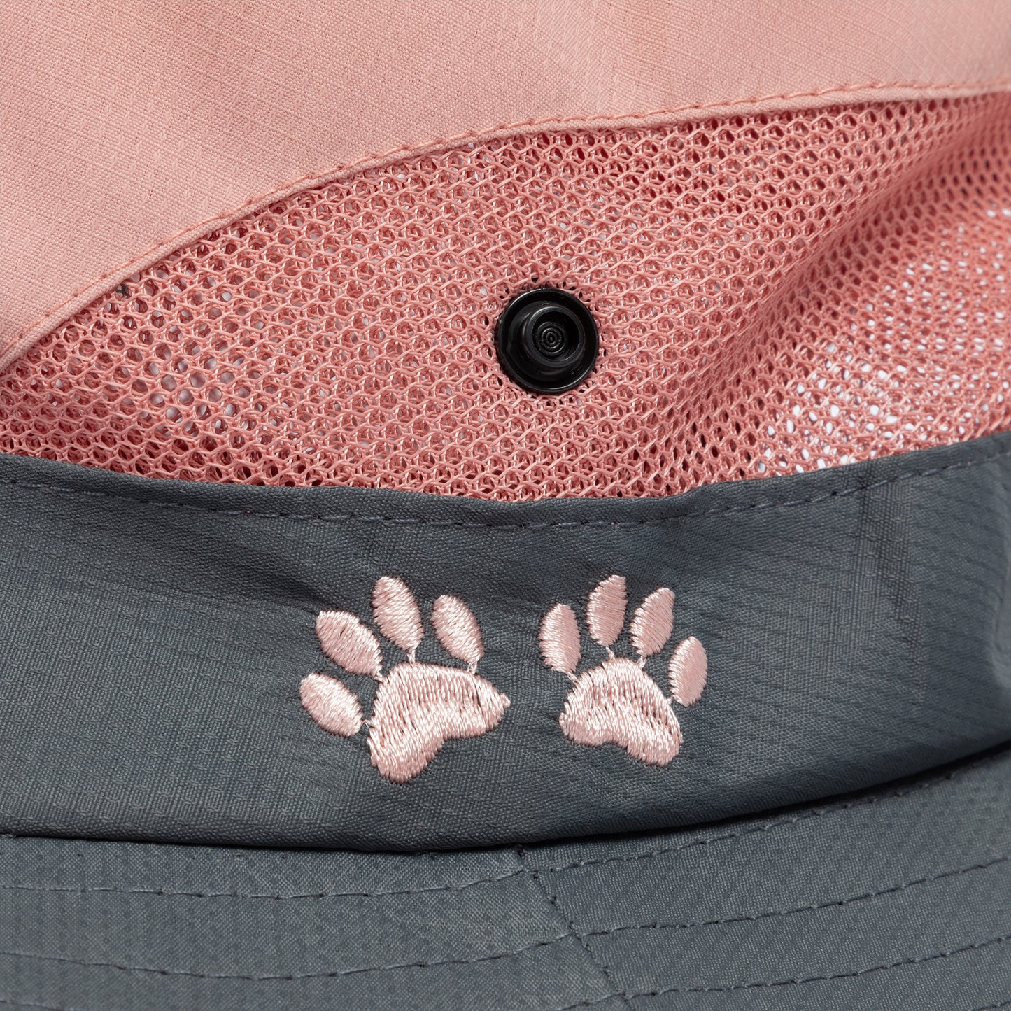 Stay cool and stylish with this breathable sun hat, featuring a custom two-paw embroidered detail on the side. Crafted from 100% lightweight polyester with built-in UPF 50+ protection, it offers all-day comfort and practical sun defense. A built-in ponytail hole and adjustable chin and back straps ensure a secure, personalized fit, while the washable fabric makes care a breeze. Whether you're hiking, gardening, or lounging by the water, this hat keeps you protected and effortlessly polished.