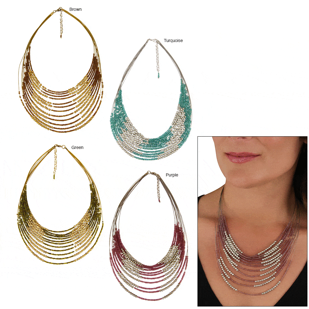 Our sparkling necklace features ten beaded strands strung together for a beautiful look.