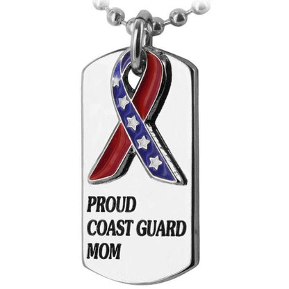 Who's more filled with pride: the one who serves in the Coast Guard -- or his mom? We think we know the answer! Our dog tag sports a star-spangled ribbon and tells the world that you raised a great American. And it's made right here in the U.S.A.
