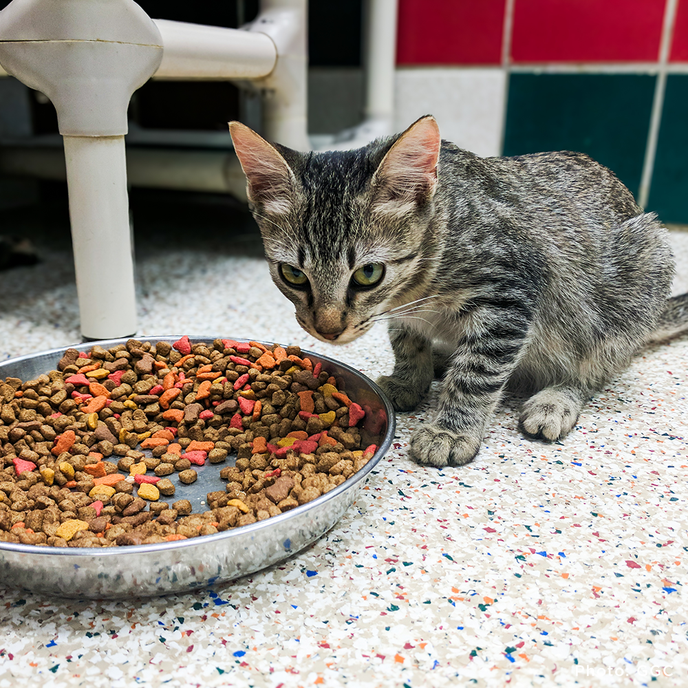 This orphaned kitten was living in a truck for a week before he was rescued. He was taken in by a foster family who fed him nutritious food, thanks to your donations. He continues to grow and thrive.