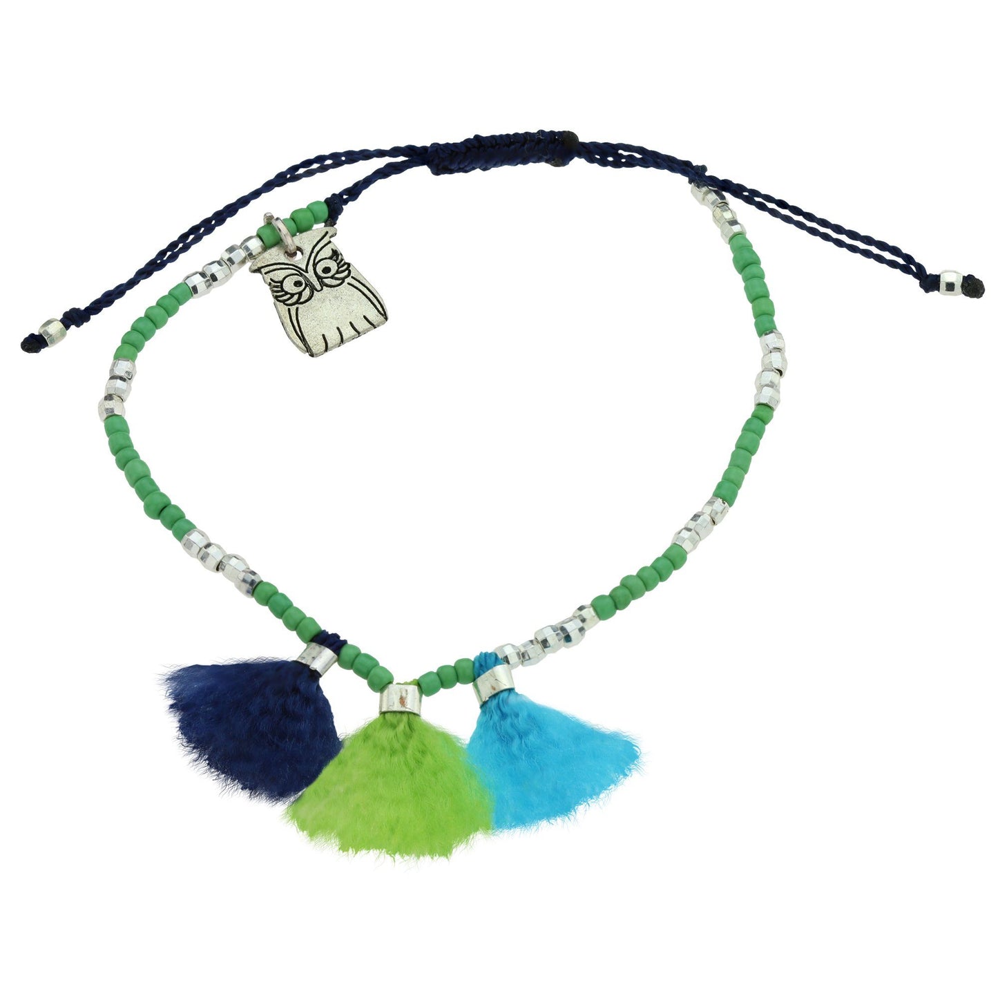 Each tassel bracelet has a tiny charm: an owl for wisdom; an arrow for bravery; a peace symbol for peace; an anchor for hope; a heart for love; and a wishbone for luck. These pair great with our Infinite Inspiration and Infinite Inspiration Statement bracelet collections.