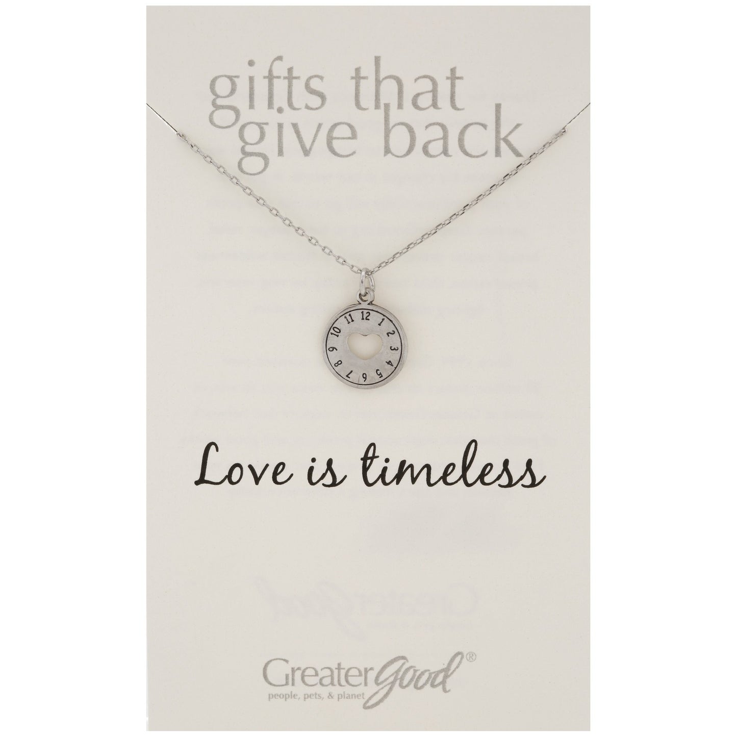 True love is timeless! Featuring a clock face with a centered heart, this pewter pendant reflects the timeless nature of love.