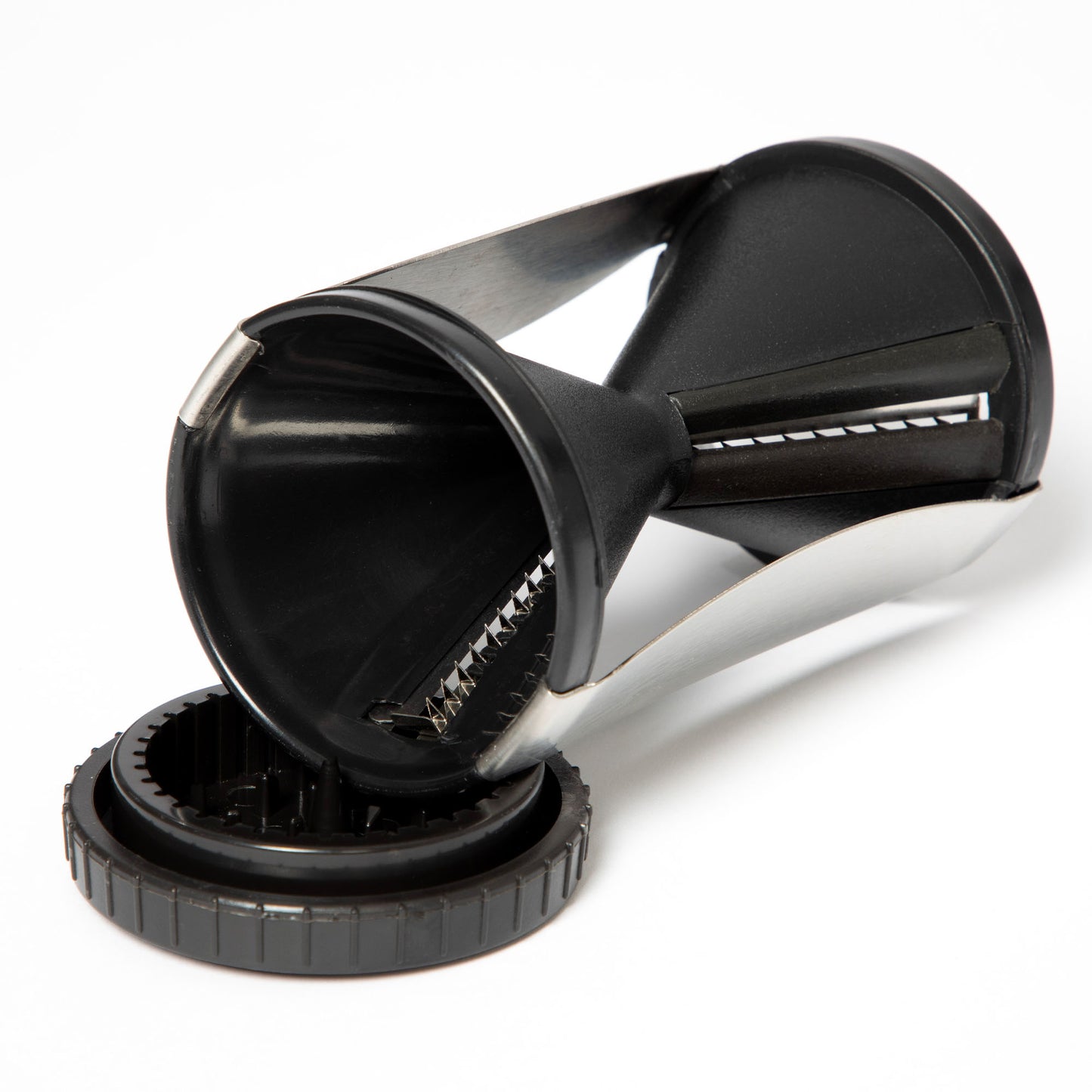 This is easy to use and is a great price. The only thing you need to be careful not to hold it by the inside because the blades are very sharp!! Otherwise it makes nice zucchini spirals. Yummy!