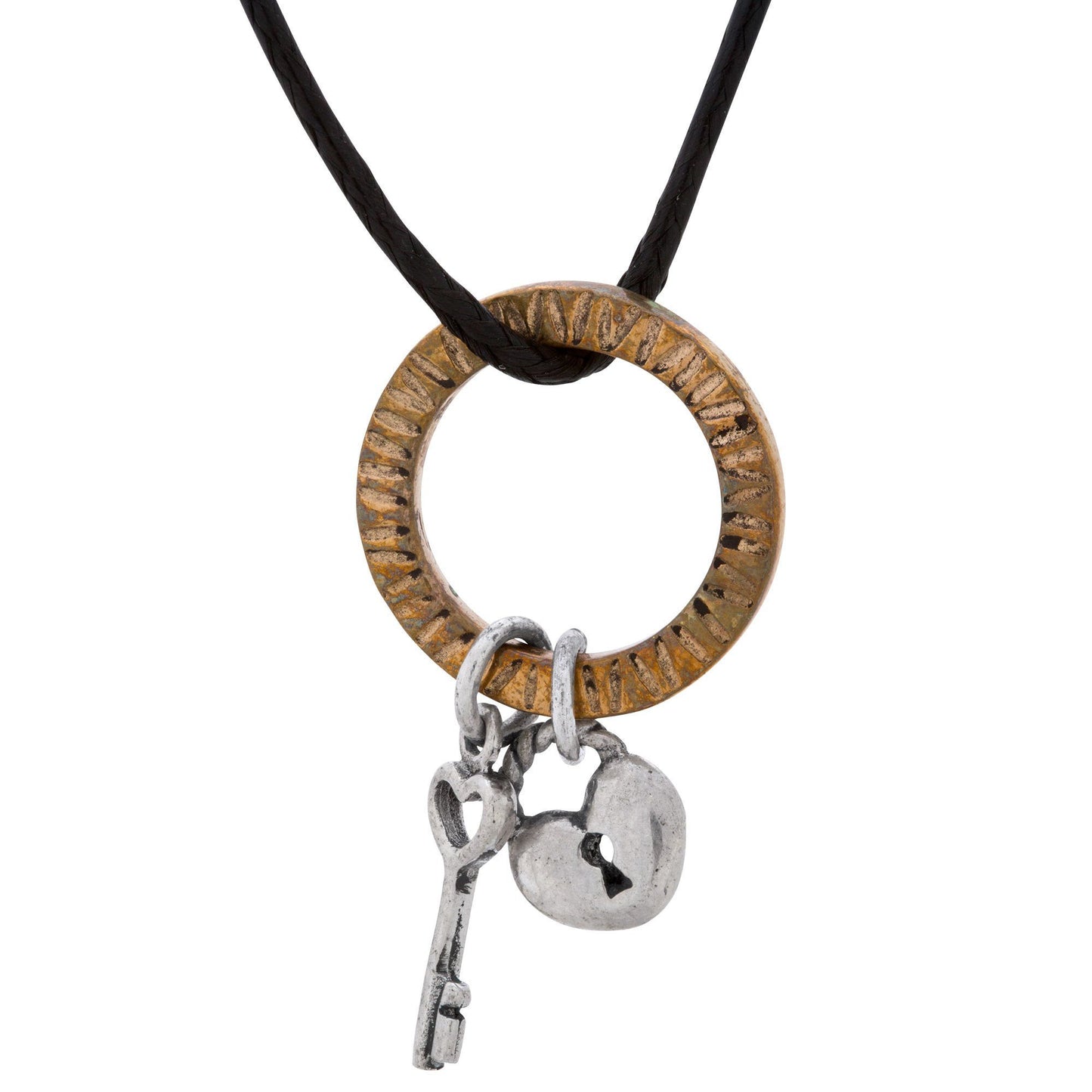 - Brass-tone on cotton cord: 16" L (40.6 cm) with 2" (5.1 cm) extender