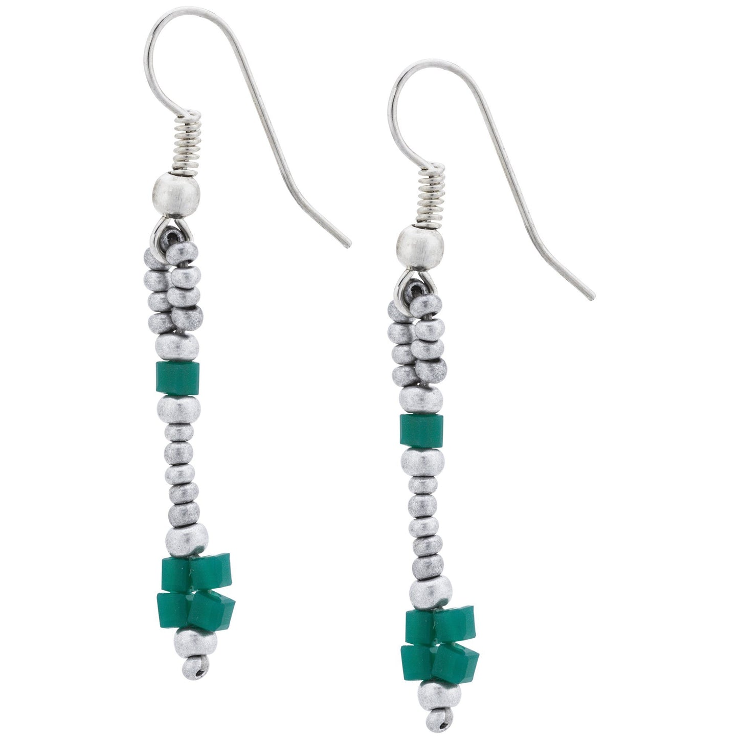 Delicate square tiles are strung amid silver-tone beads for these chic earrings. This beautiful design was made by Guatemalan women from the village of San Antonio Palopo.