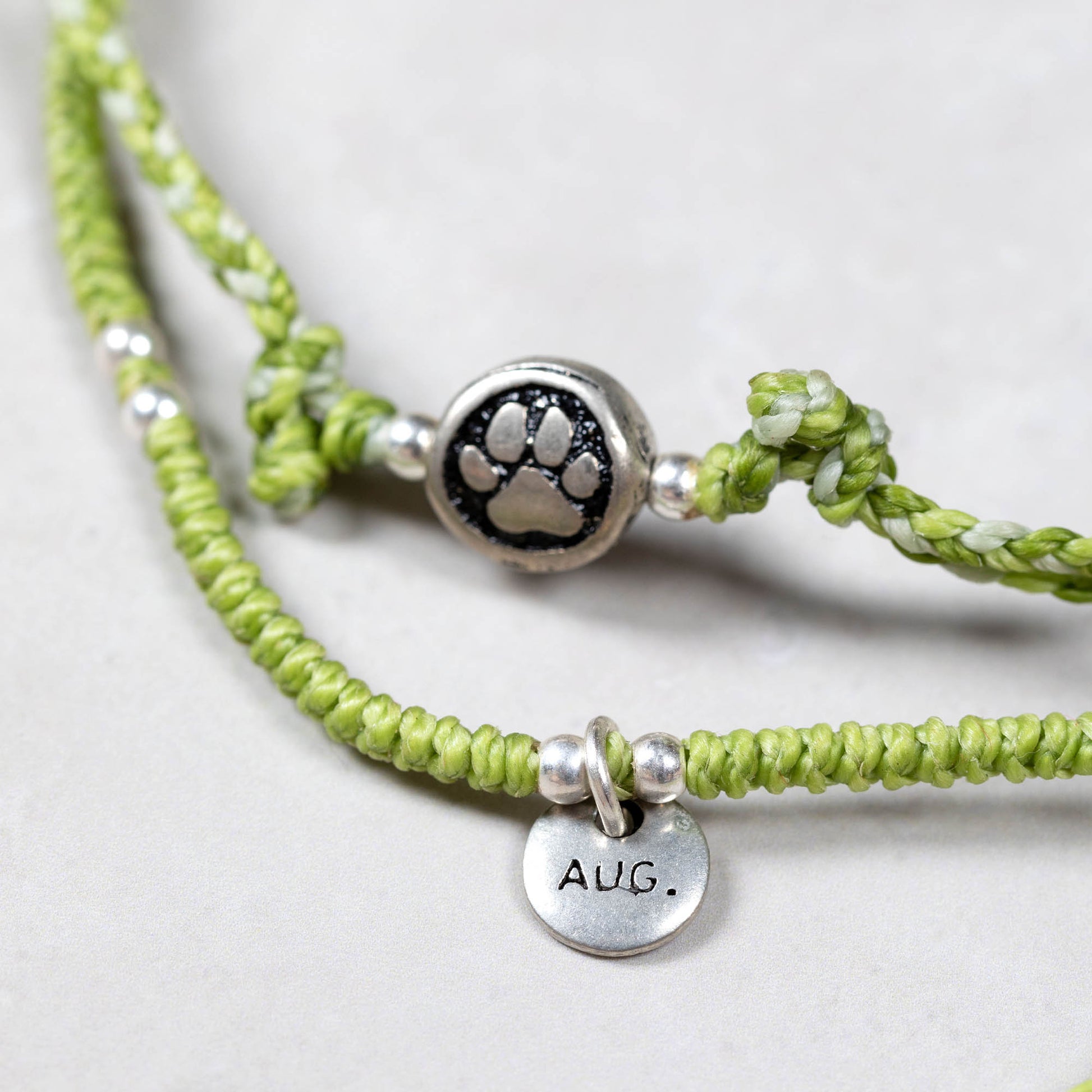 Handwoven with colorful thread and silver-tone beads and charms, this anklet duo celebrates your four-legged companion's birth or adoption month! Each set corresponds to the month's birthstone color. Whether your pet is still by your side or simply in your heart, each anklet is a vibrant display of your love.
