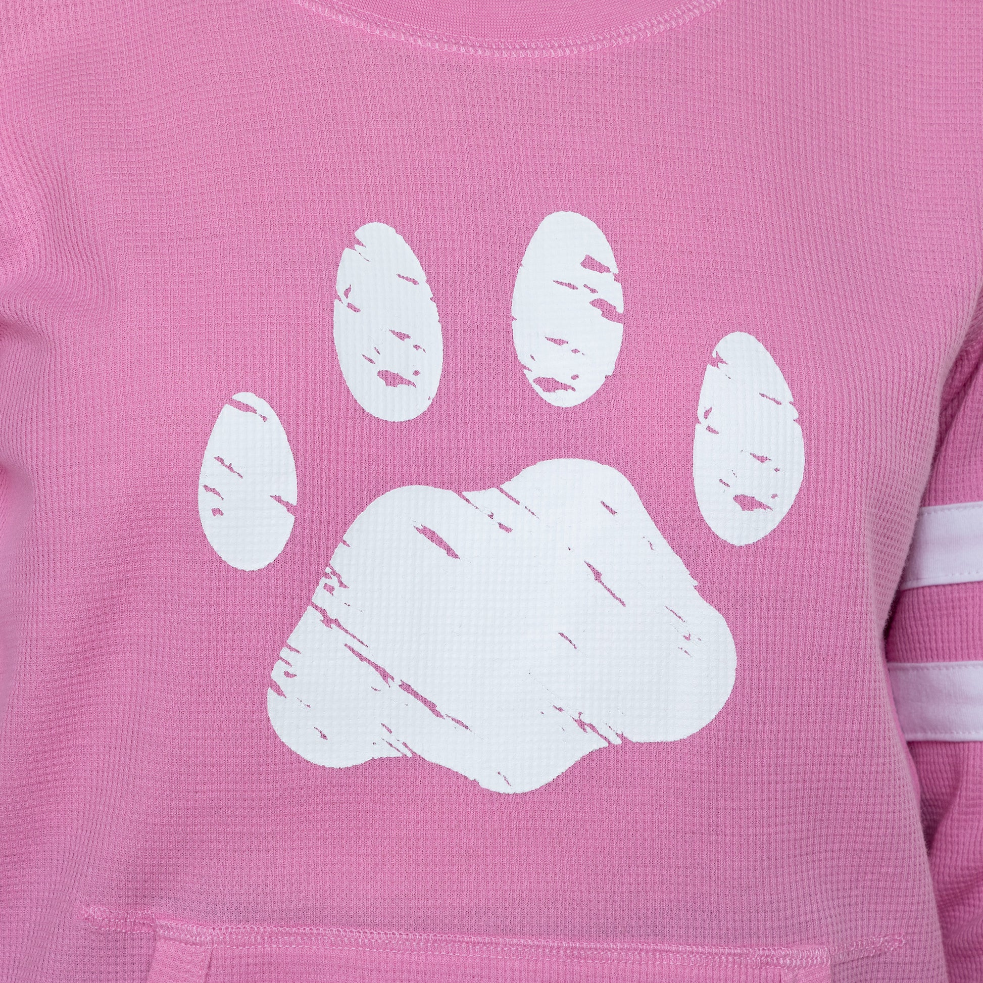 Paw Stripe Waffle Knit Thermal Long Sleeve Top
