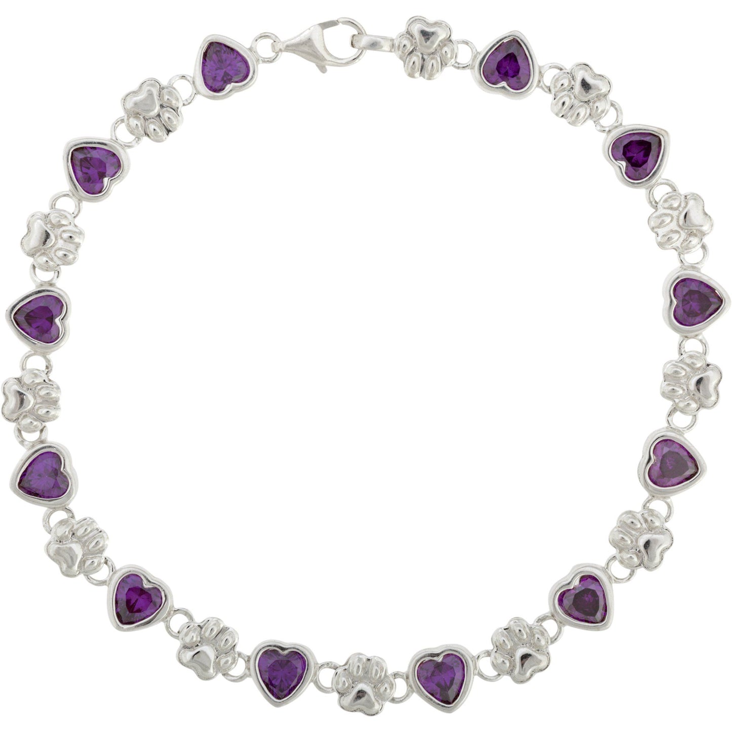 Sterling silver paw prints and amethyst hearts link to encircle your wrist, proudly displaying the importance of your animal love! Handmade by artisans in Bolivia, this shiny piece is subtle yet sweet, delighting you with every wear.