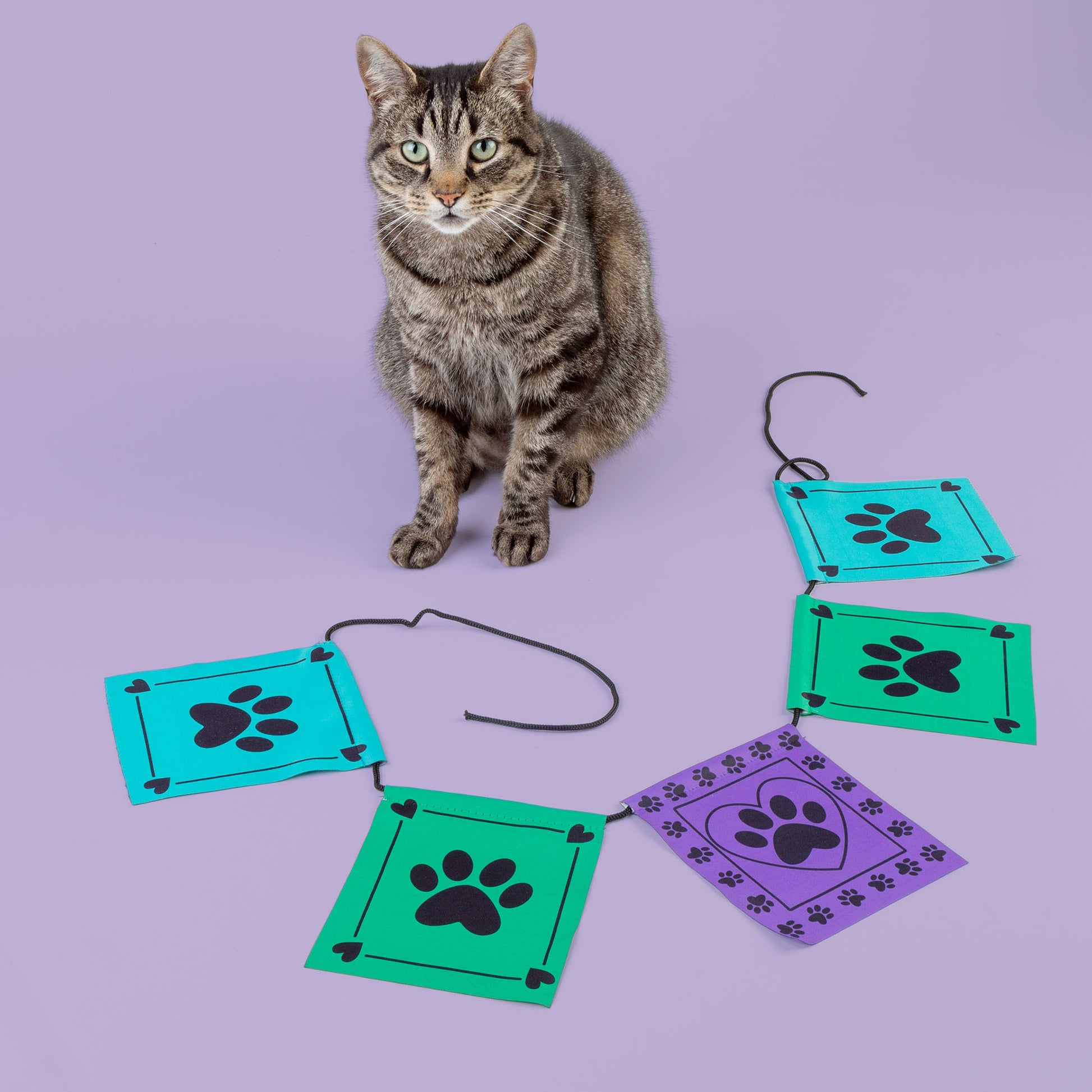 - Includes cloth gift bag which reads: "Paw Blessing Flag"
