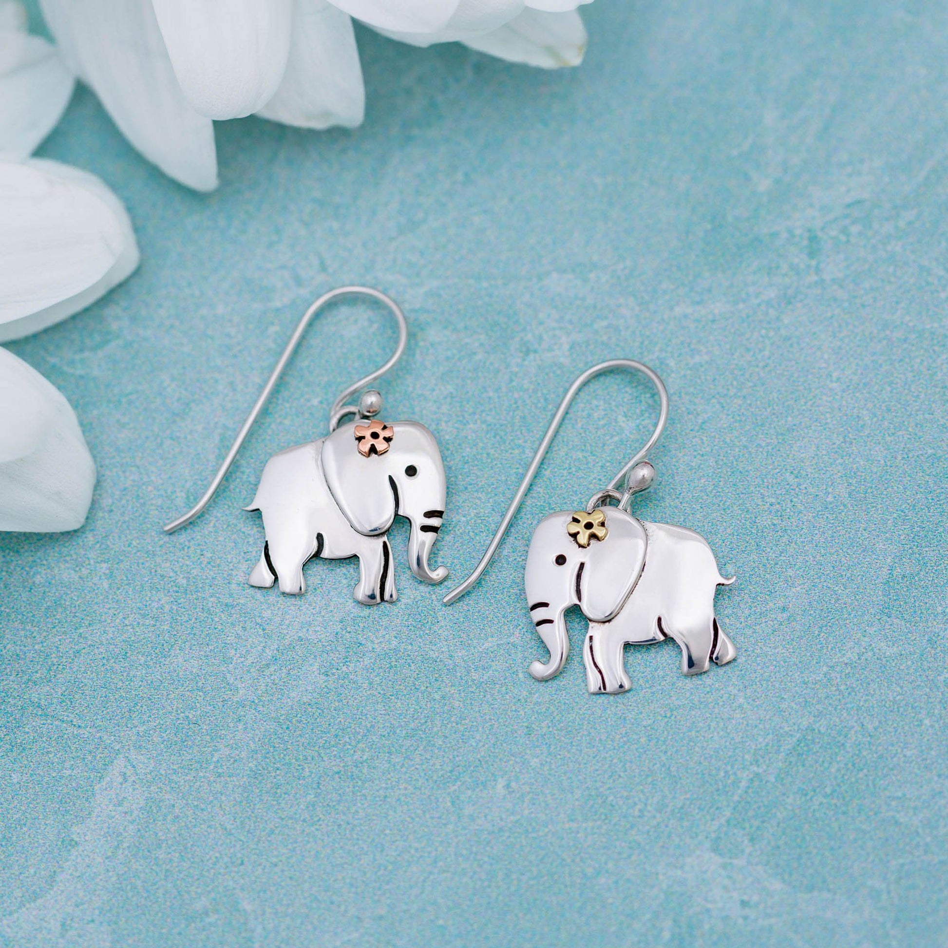 I support an elephant charity and what a lovely way to share that . These elephant earrings are well-made and just adorable. The flower is added on so it is 3-dimensional. A lovely gift for a young woman or a young at heart mature one! The three different colored metals make it an easy match with other jewelry.