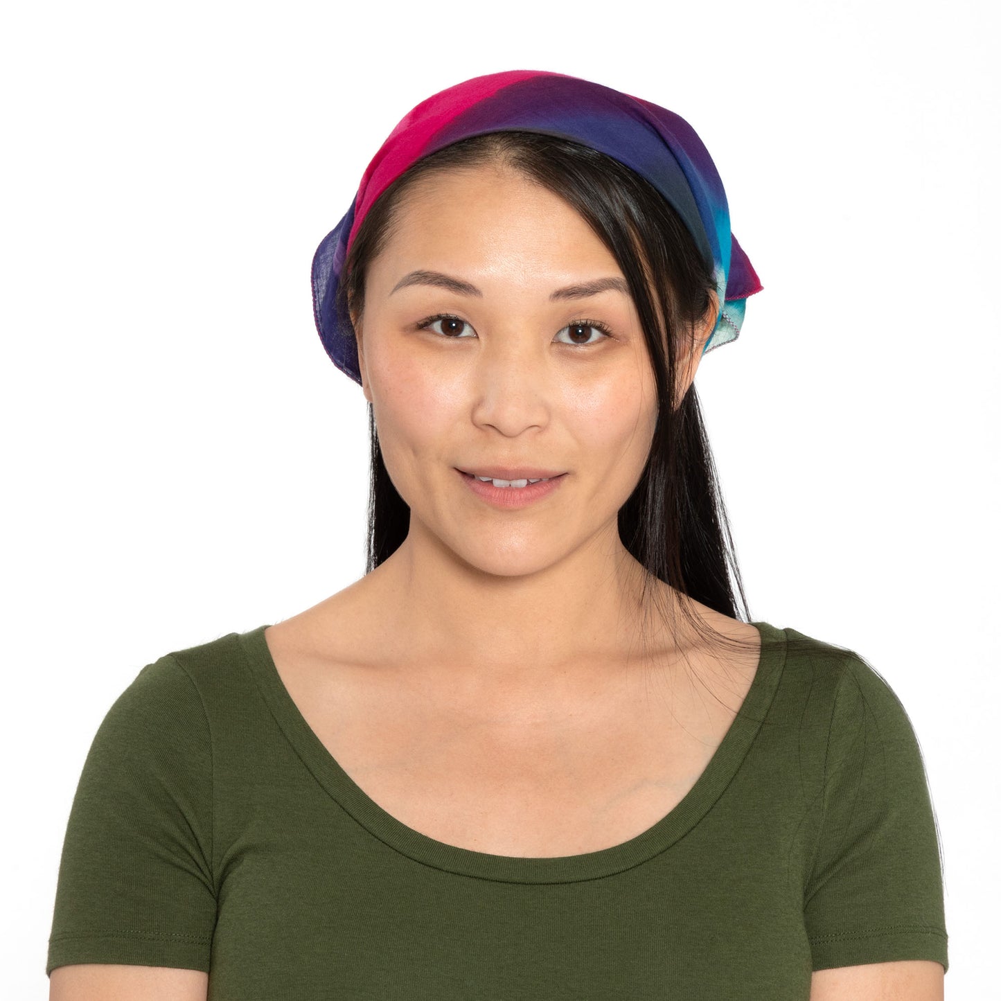 Hand-dyed in bold, dazzling colors, this colorful bandana scarf can be worn in any number of ways to serve its needed purpose! Made with 100% cotton with soft rounded corners, it is a sustainable, multipurpose item that you will never leave home without.