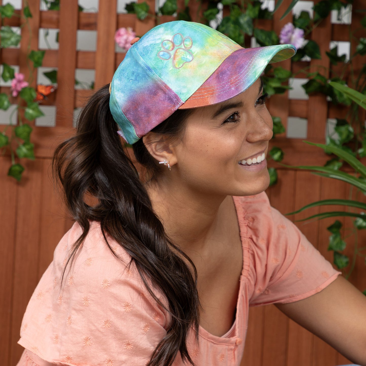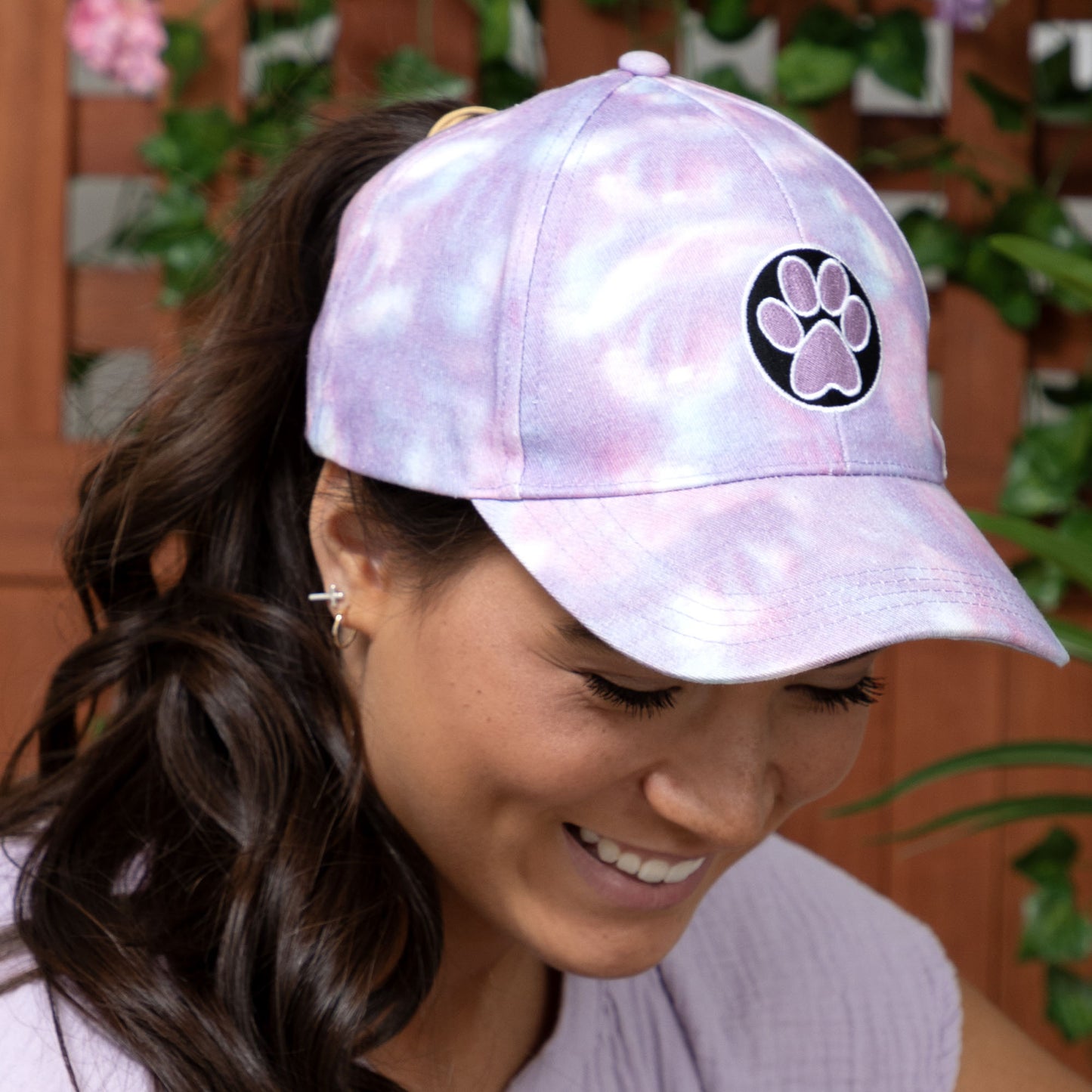 Paw Print Tie-Dye Ponytail Hat