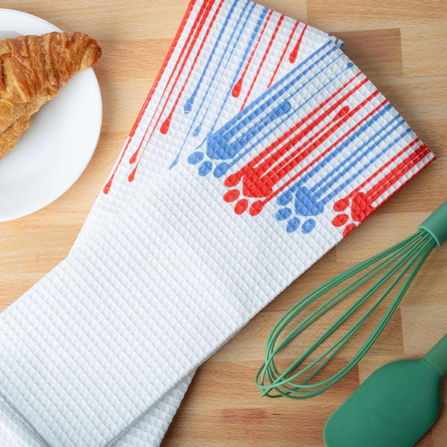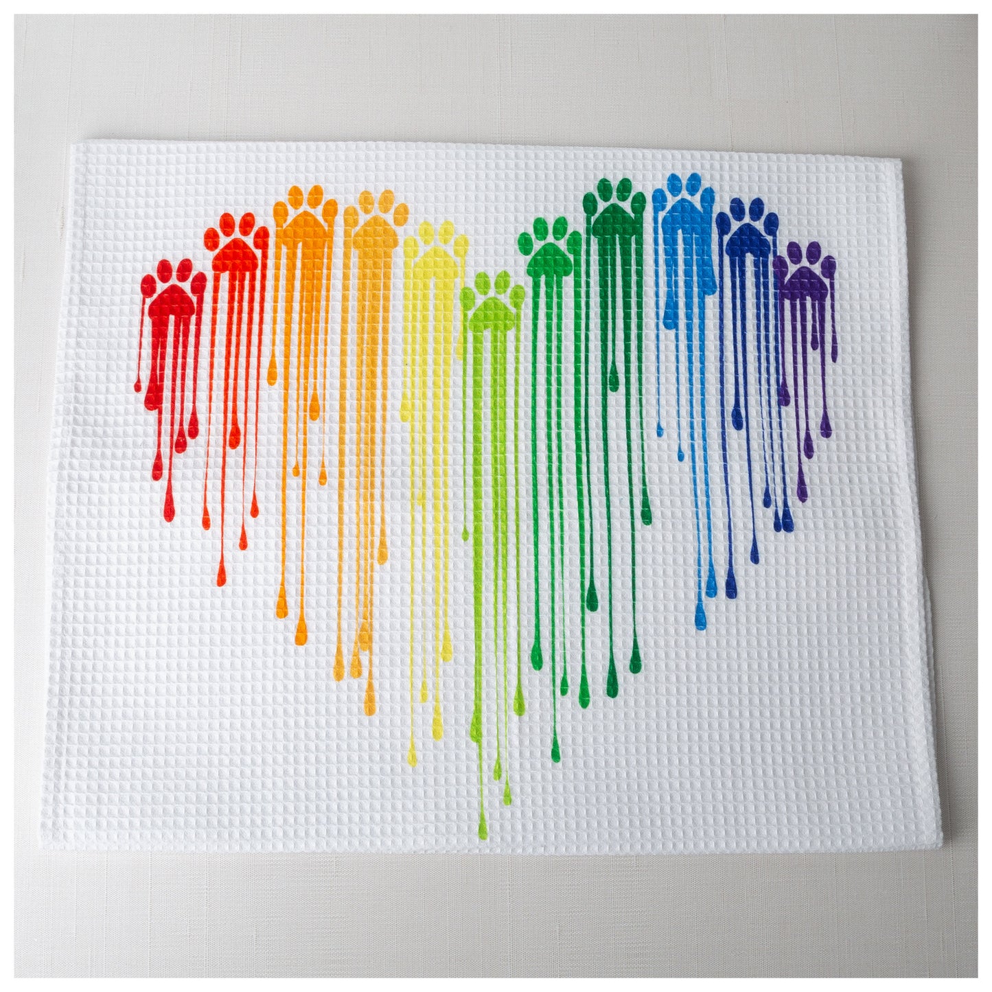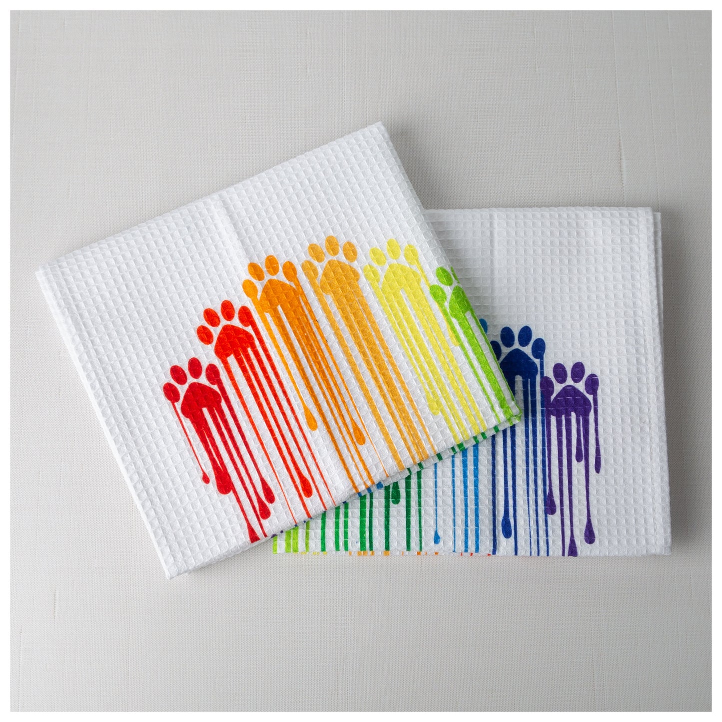 A heart made up of dripping colorful paw prints brings an animal-friendly, artistic touch to your kitchen. Or choose from paw print designs, watercolor dragonflies, or a coordinating garden scene with winged wildlife all over. Printed on 100% cotton dish towels, this pair of kitchen essentials keeps your dishes sparkling and your cooking space tidy!