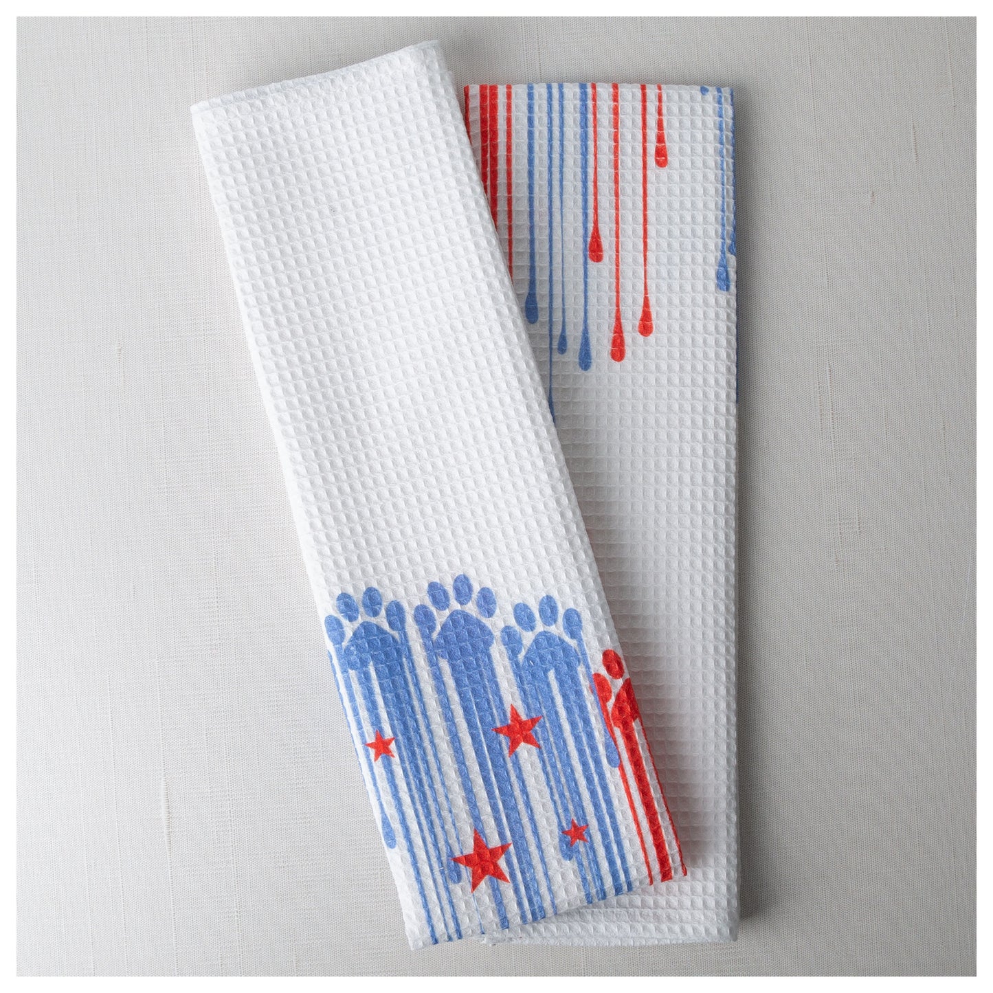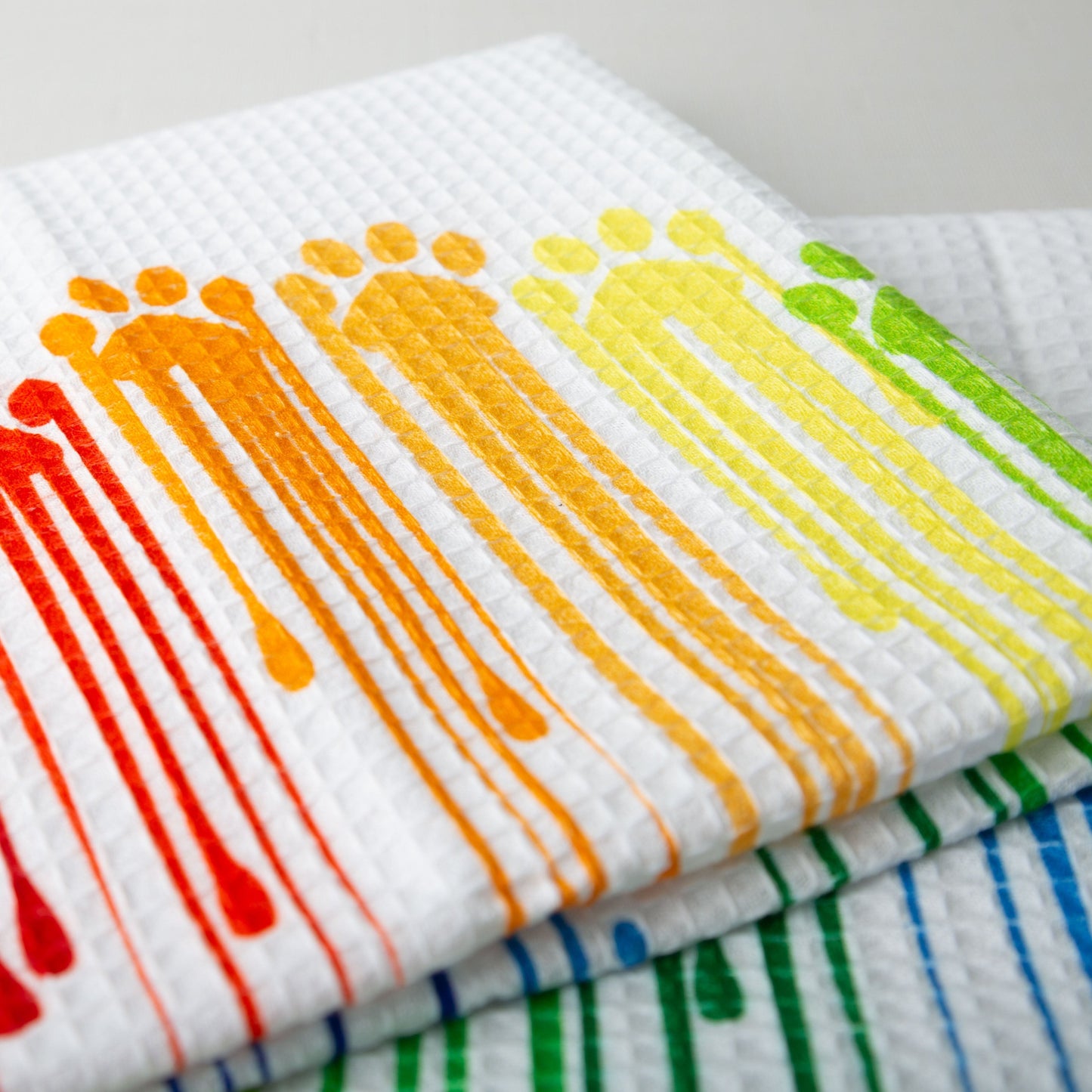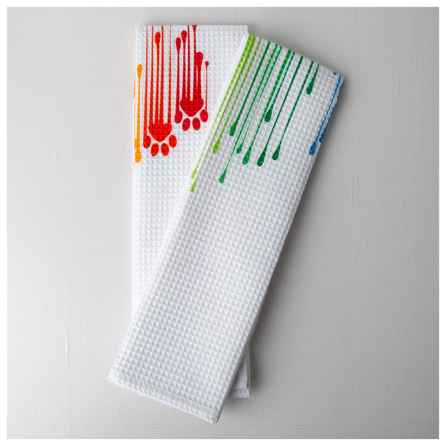 A heart made up of dripping colorful paw prints brings an animal-friendly, artistic touch to your kitchen. Or choose from paw print designs, watercolor dragonflies, or a coordinating garden scene with winged wildlife all over. Printed on 100% cotton dish towels, this pair of kitchen essentials keeps your dishes sparkling and your cooking space tidy!