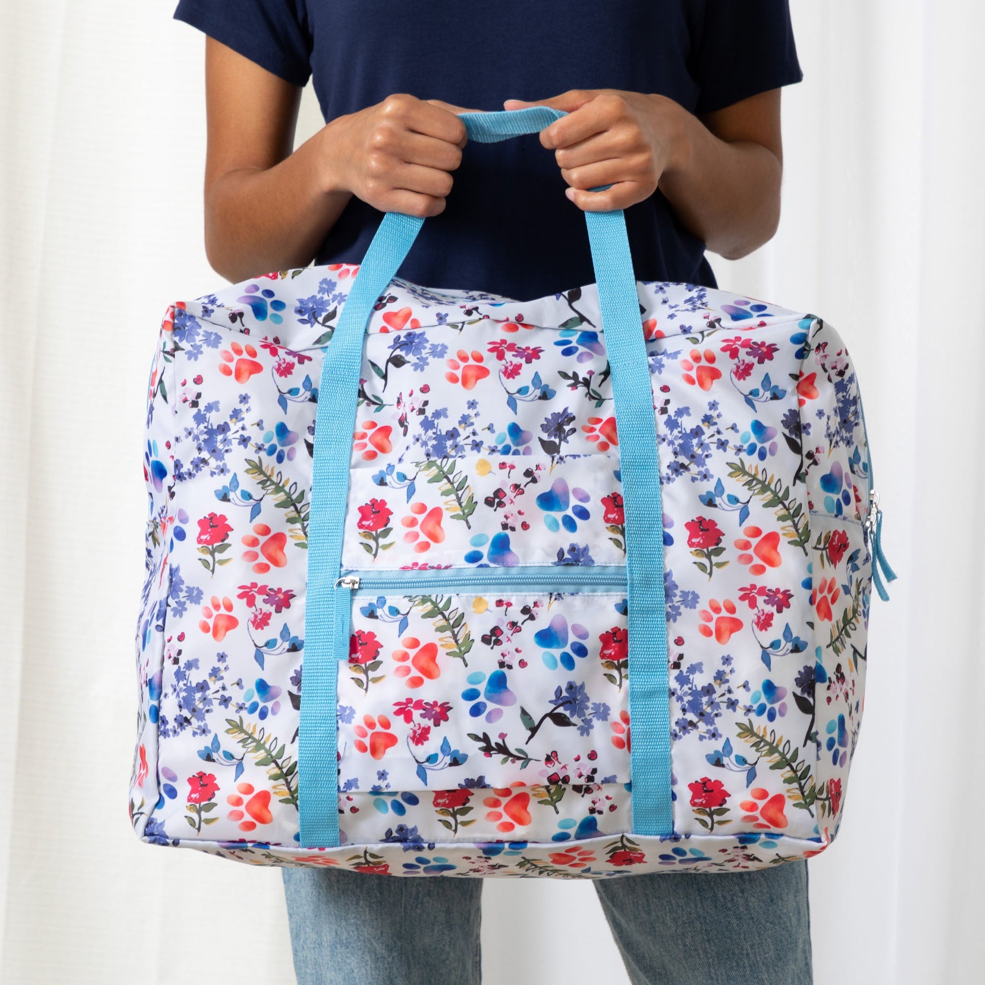colorful, whimsical, good size, great price, second time I have ordered a duffle from Animal Rescue, never disappointed, easily packs small when not needed but ready