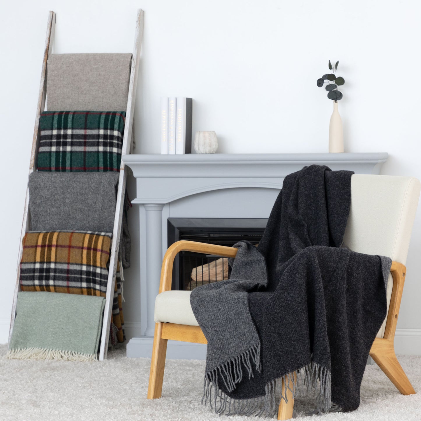 Being a highly efficient insulator and resistant to odors also gives this wool throw blanket the stamp of approval for everyday use. Plus, merino sheep grow a new layer of wool every year, making the harvesting and production of the soft yarn a sustainable practice. Woven with an array of versatile colors in a classic plaid or herringbone design with soft fringe along the edges that never goes out of style.
