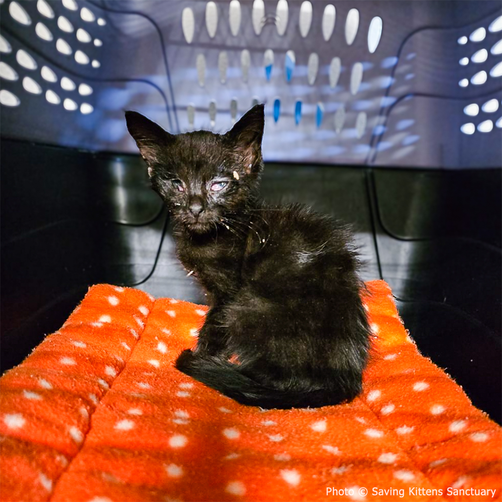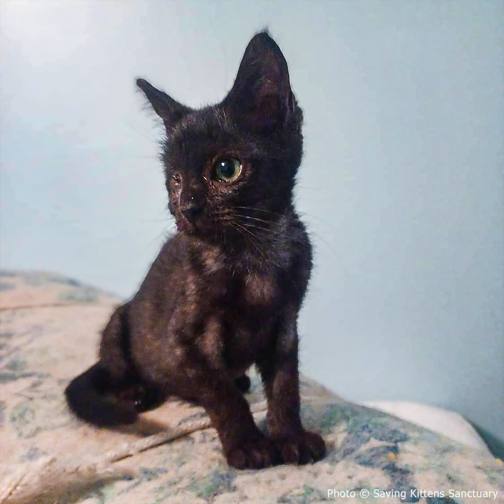 UPDATE: Aemond had surgery to remove his infected eye and is doing well. The rescue shared, "This baby not only retained vision in his good eye, but found a home in the arms of his foster mum and dad permanently. After they worked so hard to pull him through the other side, they couldn't bear to let him go. This sweet bean has never known hunger, pain, sadness, or suffering since the day we pulled his crippled body from the pavement while he sat in the rain praying for a quick death."