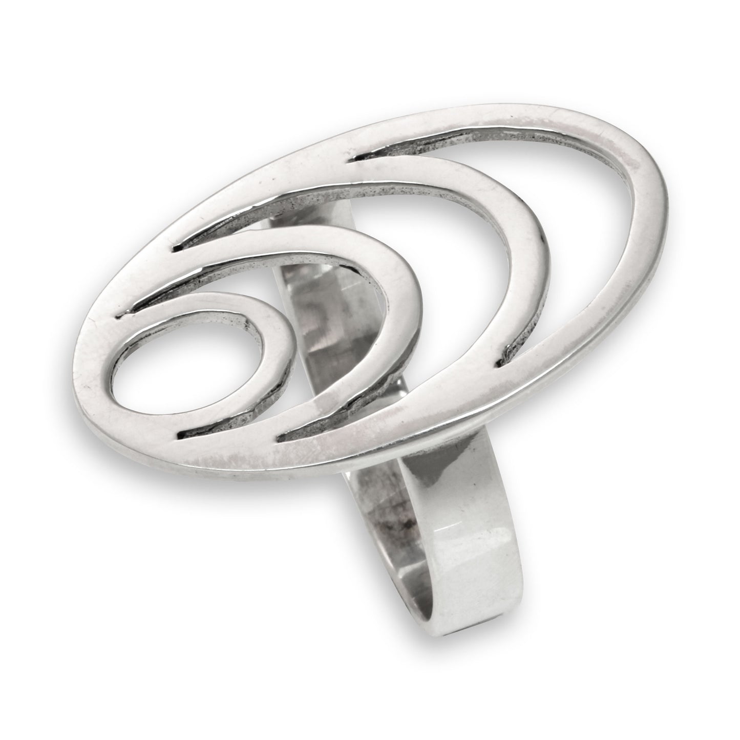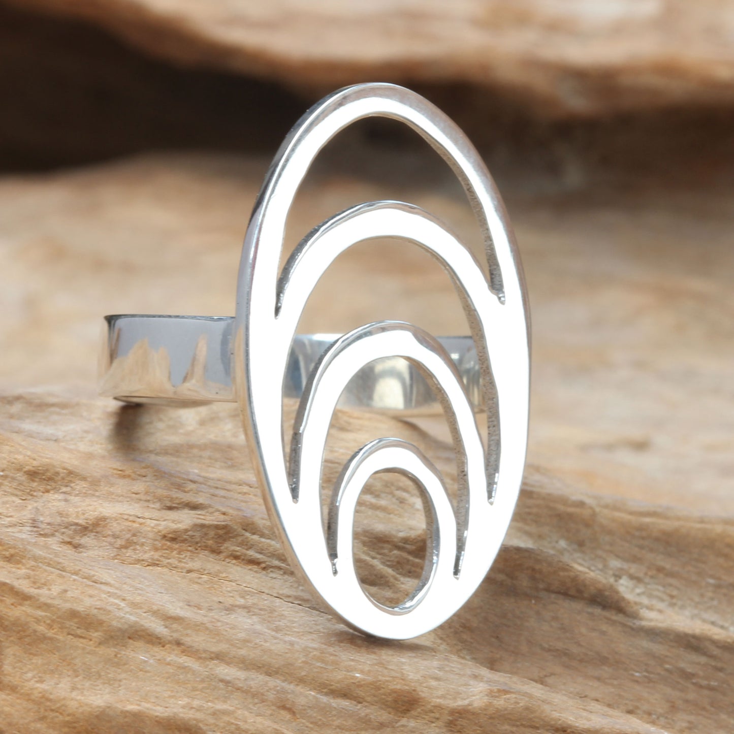 Ovals emerge from one another in a process of continuous expansion. Working in sterling silver, Sukartini creates a beautiful metaphor to center this ring.