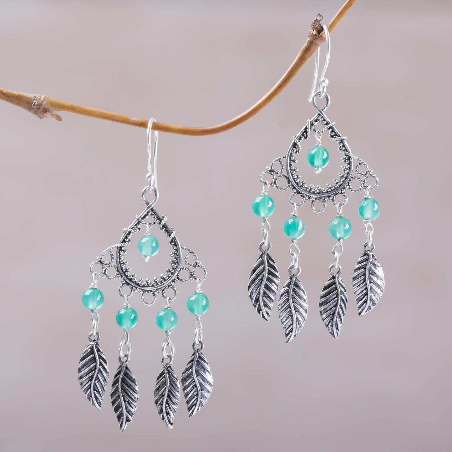 Garden Leaves Sterling Silver and Agate Leaf Chandelier Earrings from Bali
