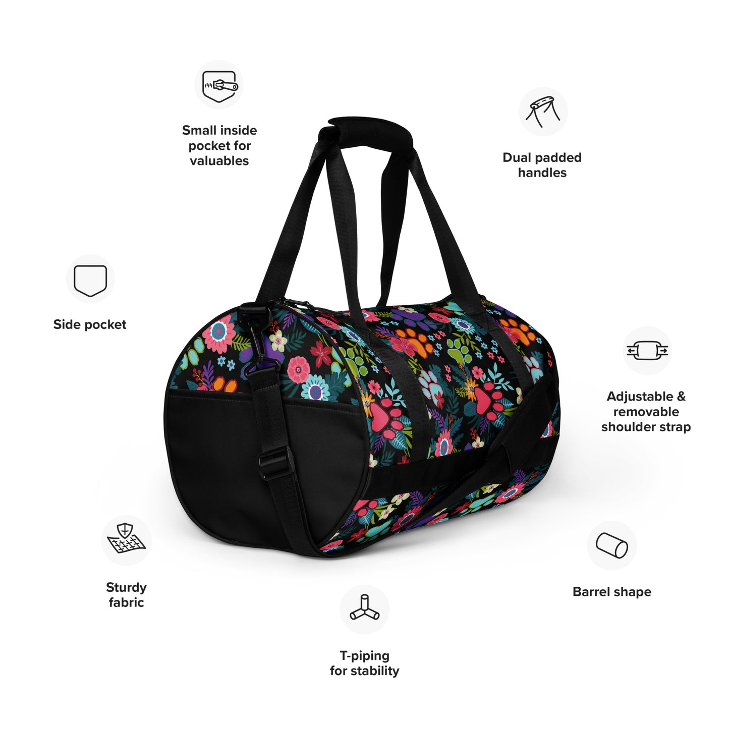 Made from 100% polyester and sturdy, water-resistant fabric, this bag is fun meets function. And it’s got pockets! Perfect for an overnight stay somewhere or for going to the gym!