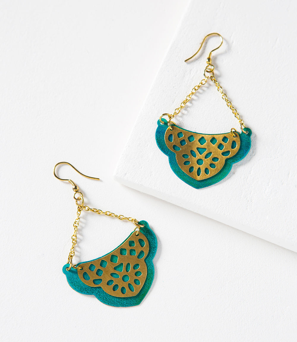 Inspired by the sea, artisans designed these stunning drop earrings. Handcrafted in India, each pair of earrings features textured brass and colorful accents.