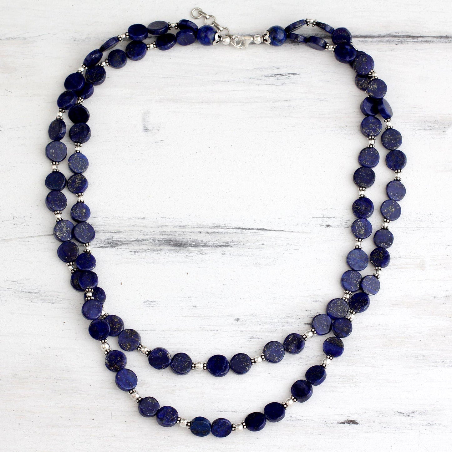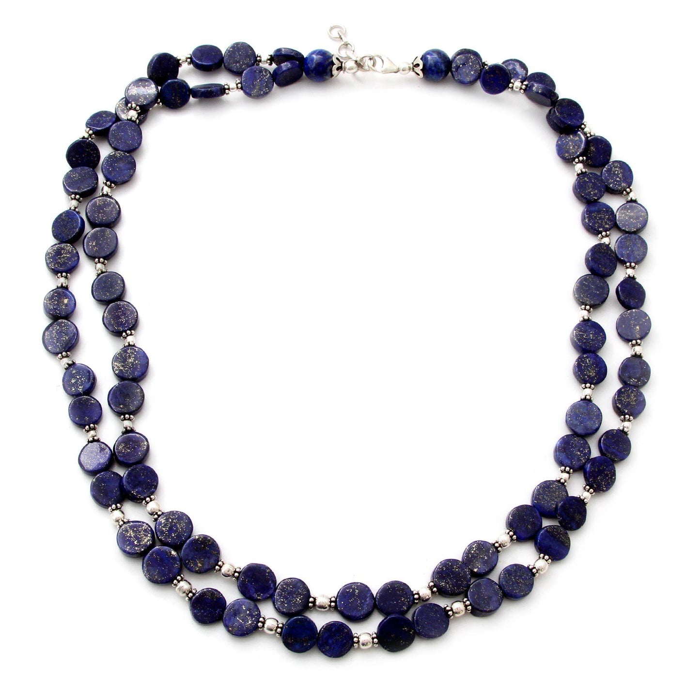 Narayani designed this beautiful double stranded necklace using lapis lazuli and sterling sterling.