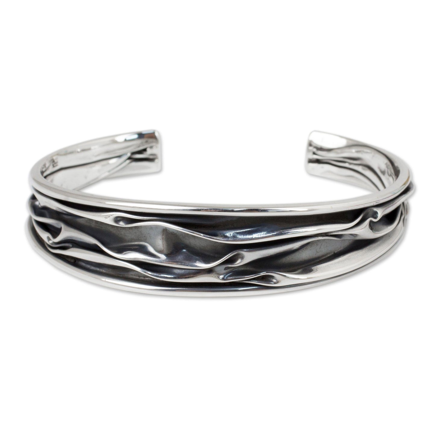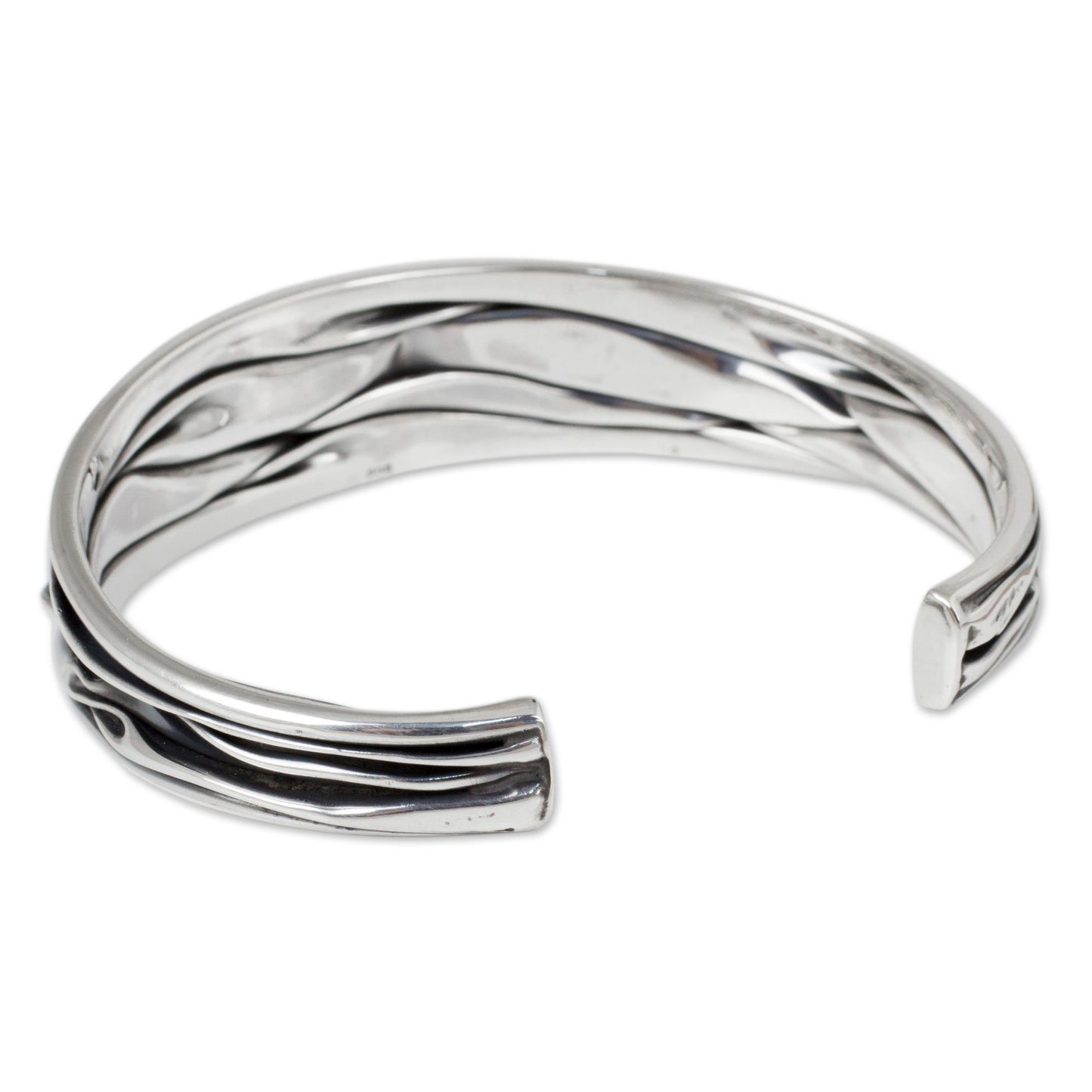 Waves from a flowing river are captured in this minimalist cuff. Achara crafts this design by hand using sterling silver.