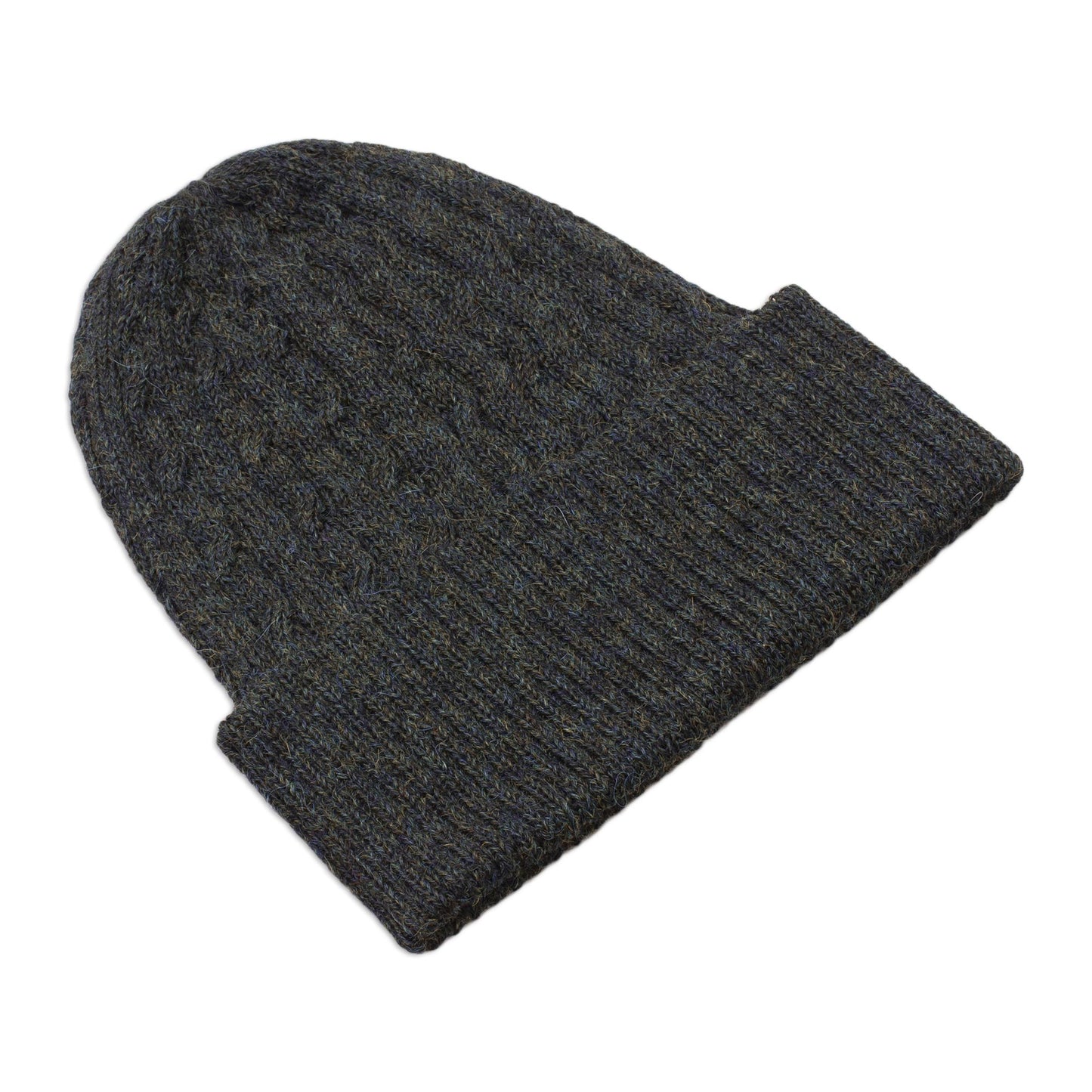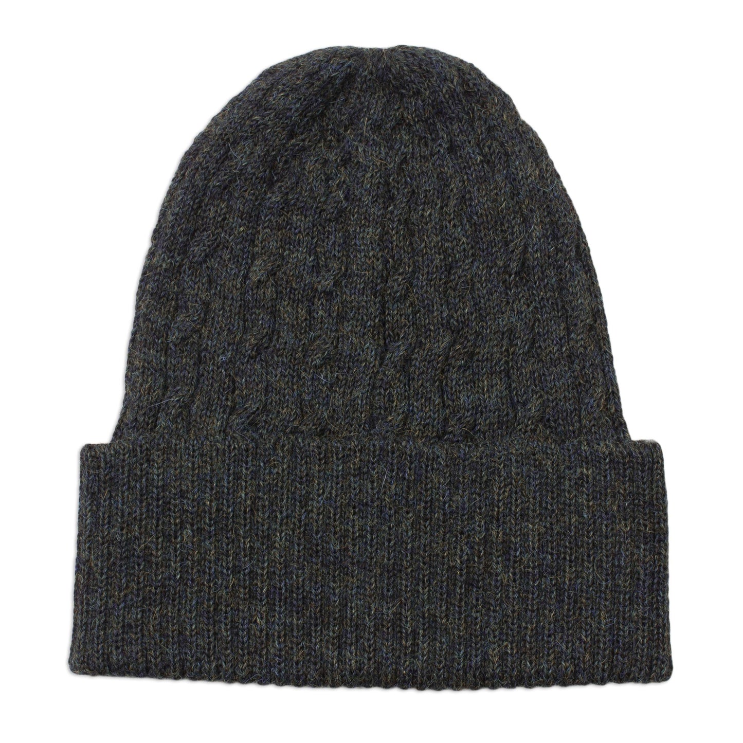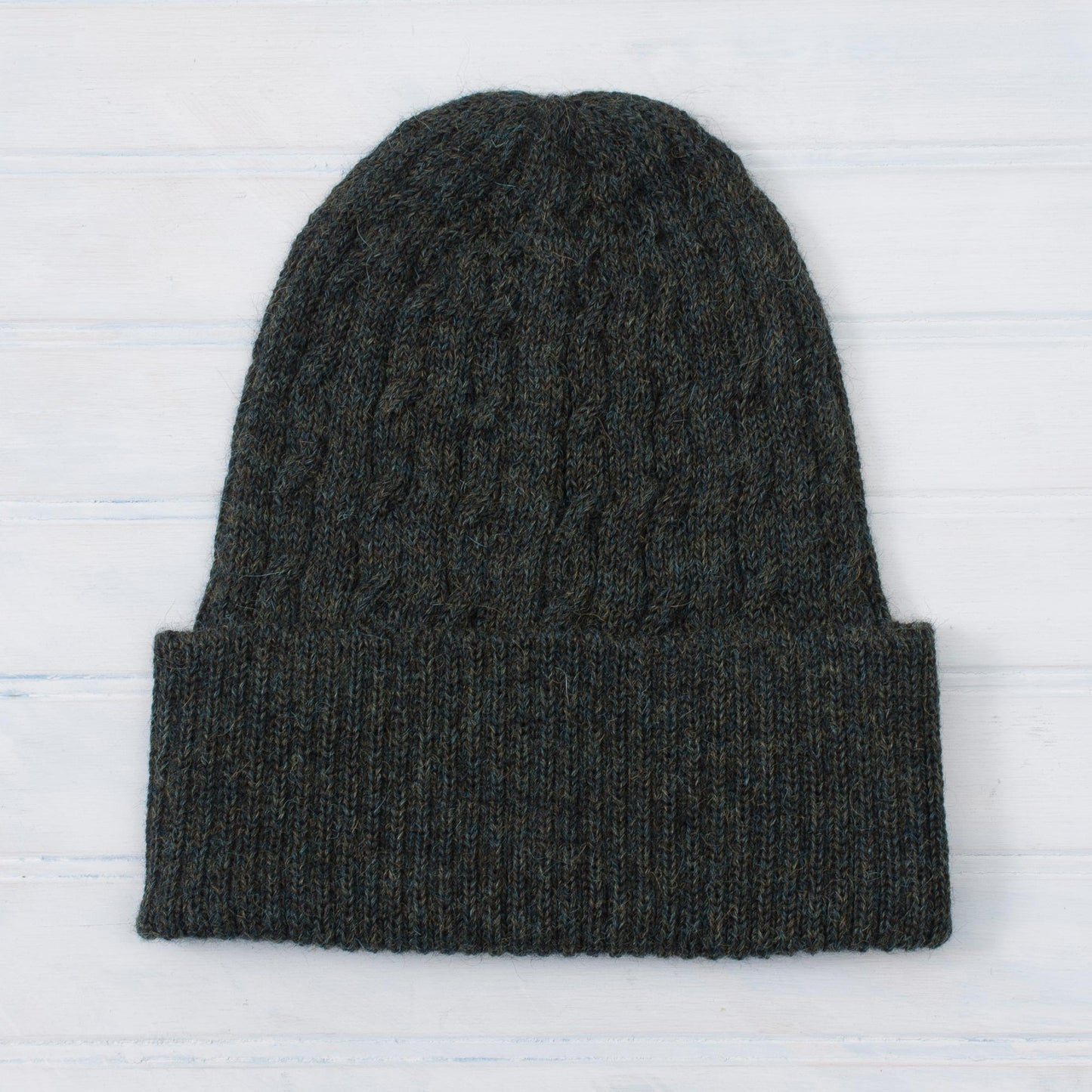 NOVICA Cable-Knit 100% Alpaca Hat in Moss from Peru, 'Moss Braid Cascade'