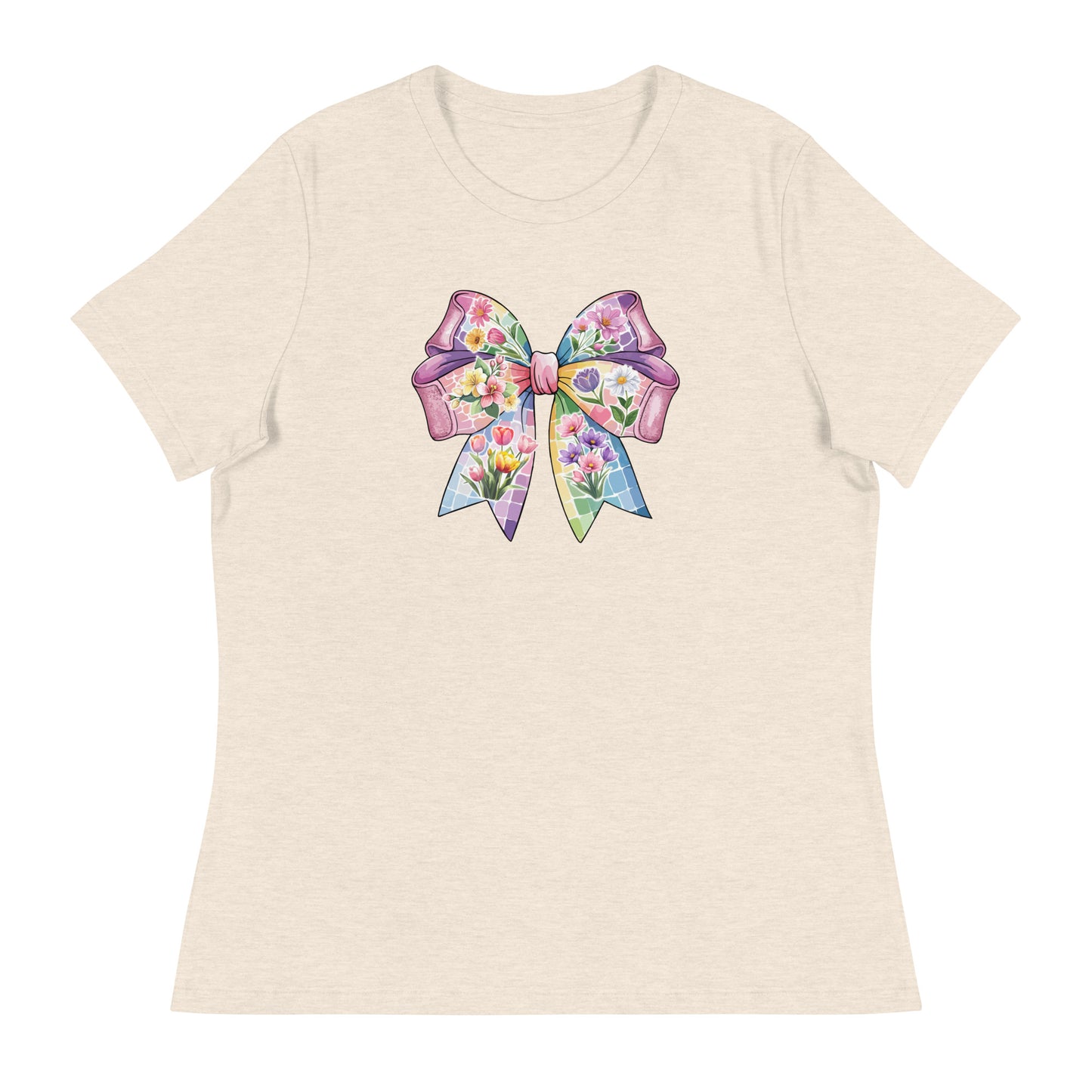 Pink Flower Springtime Bow Women's Relaxed T-Shirt