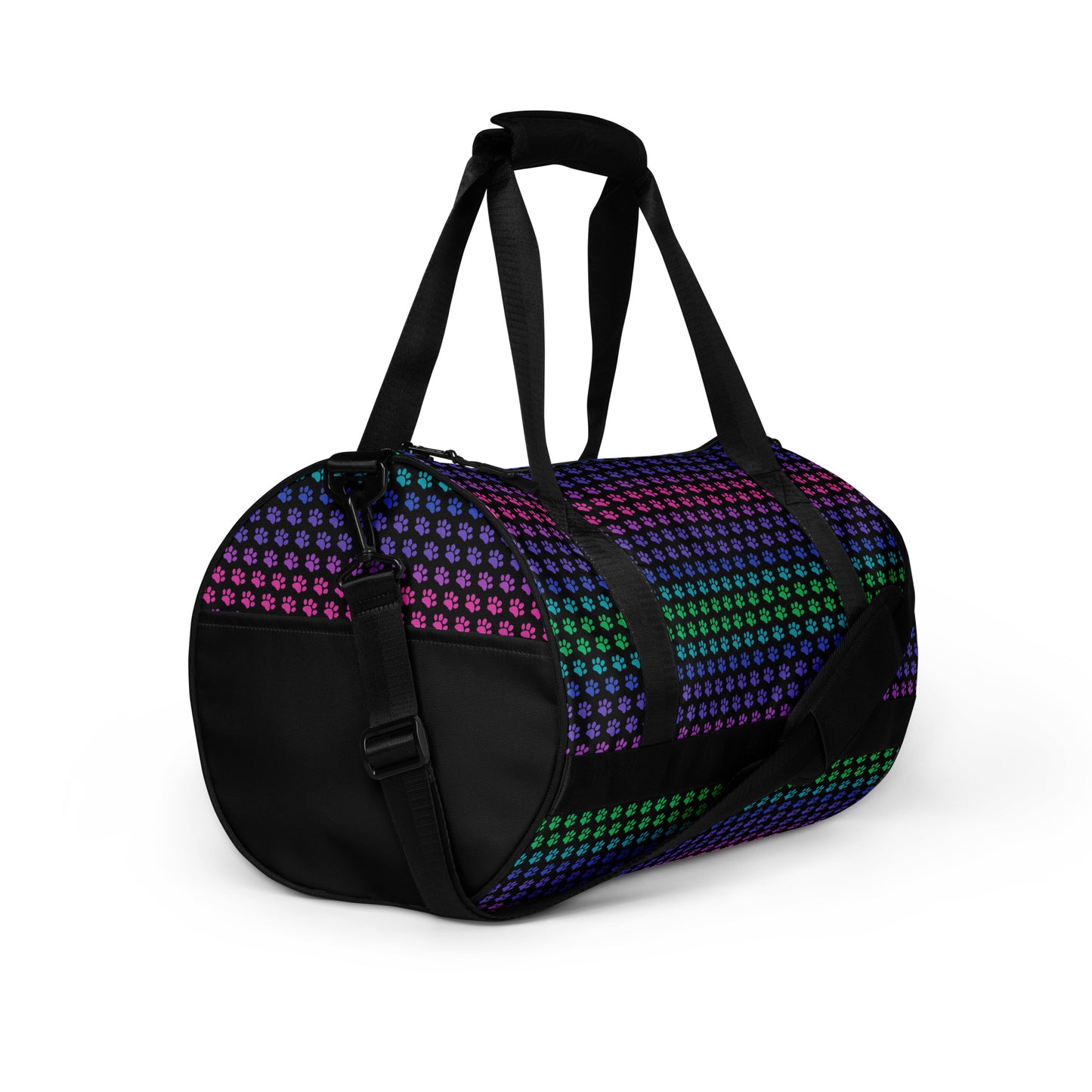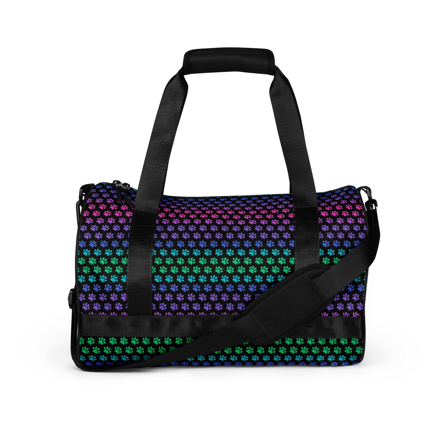 Made from 100% polyester and sturdy, water-resistant fabric, this bag is fun meets function. And it’s got pockets! This bag is perfect for any over night stay or for taking to the gym or just traveling in general.