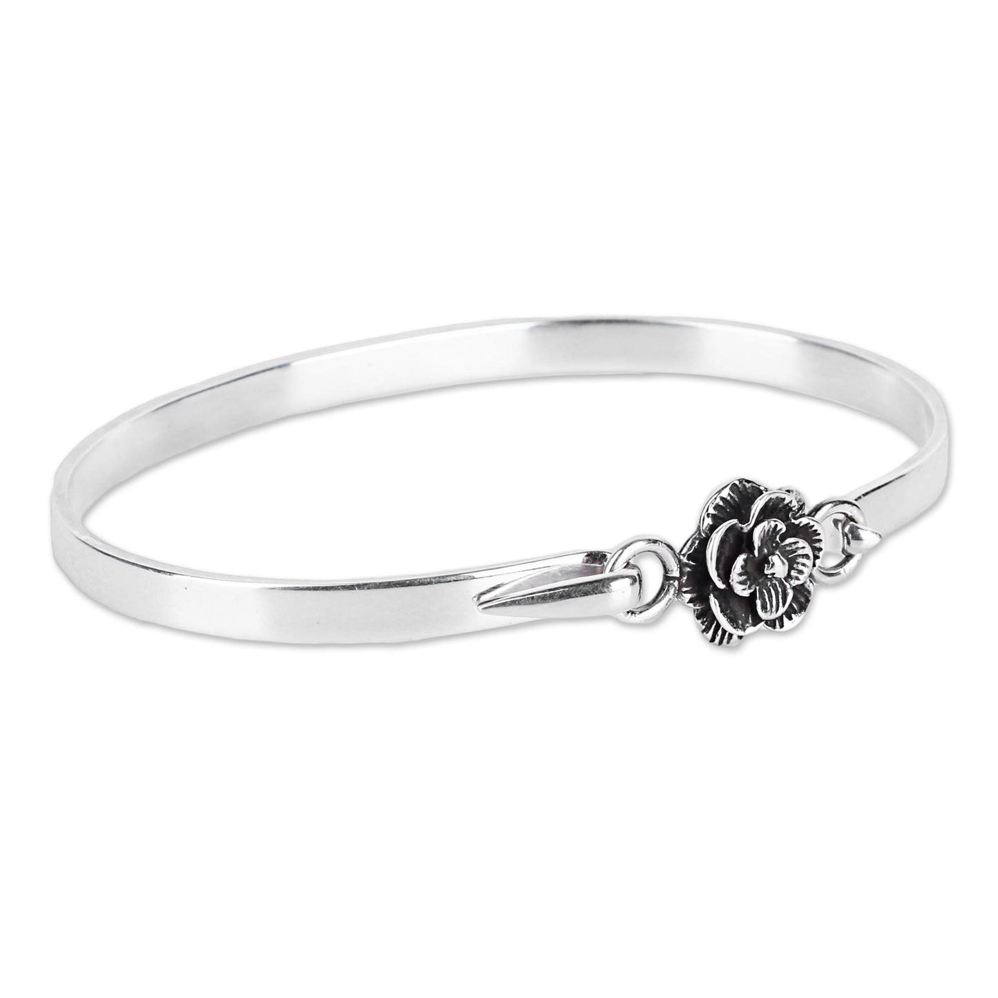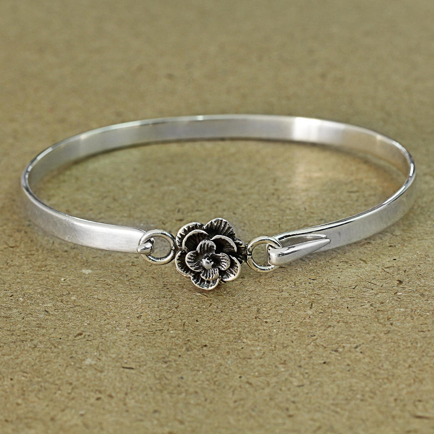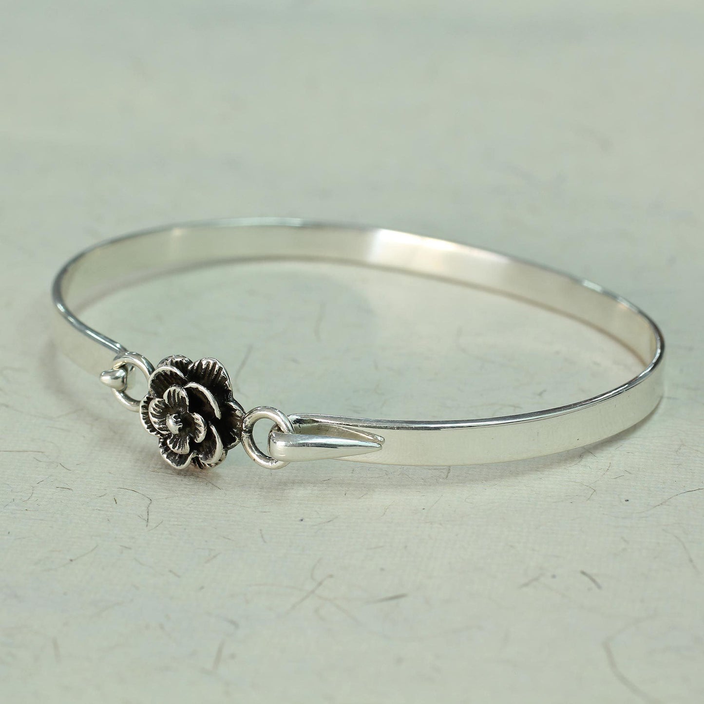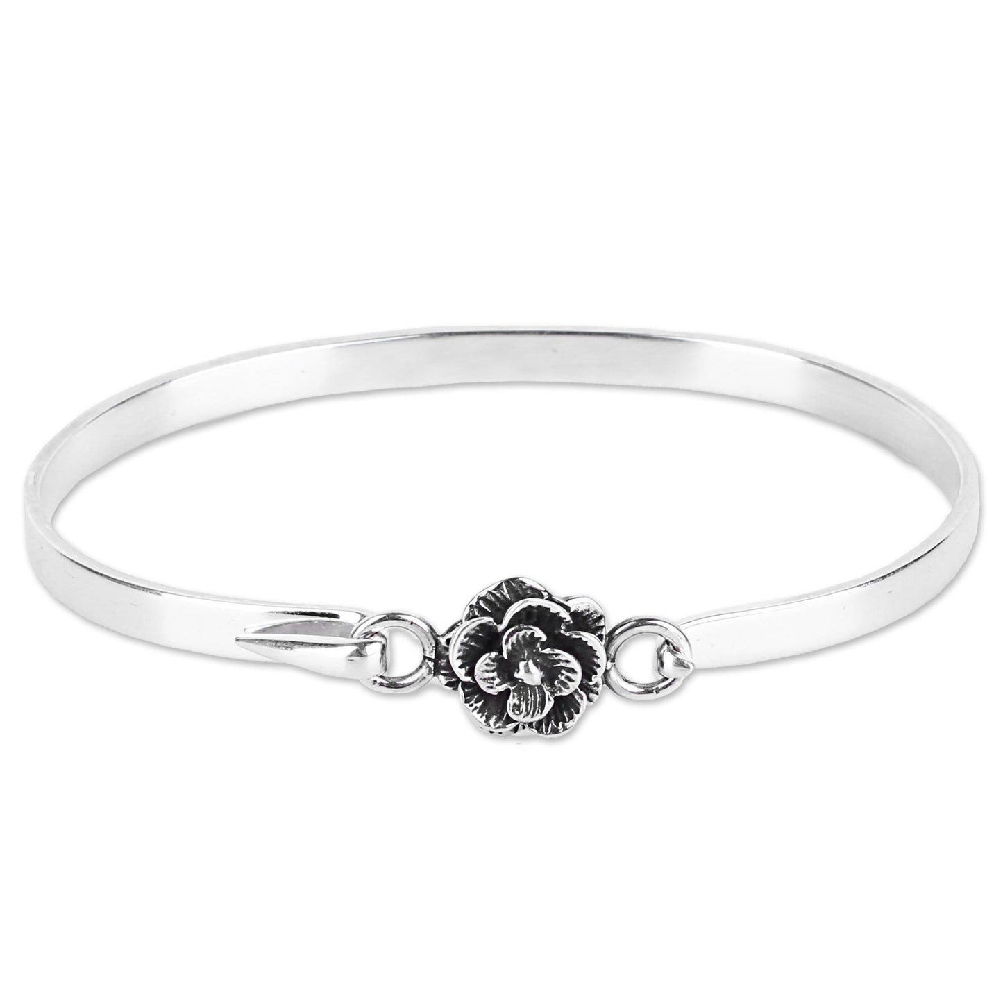 Neeru Goel crafts this original piece by hand to create a classic bracelet. This simple design features an intricate rose at the center of bracelet.