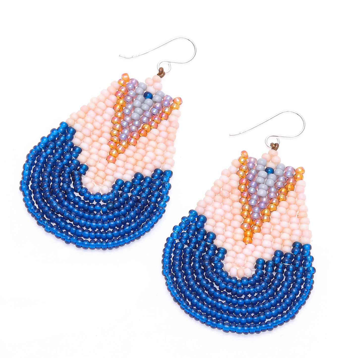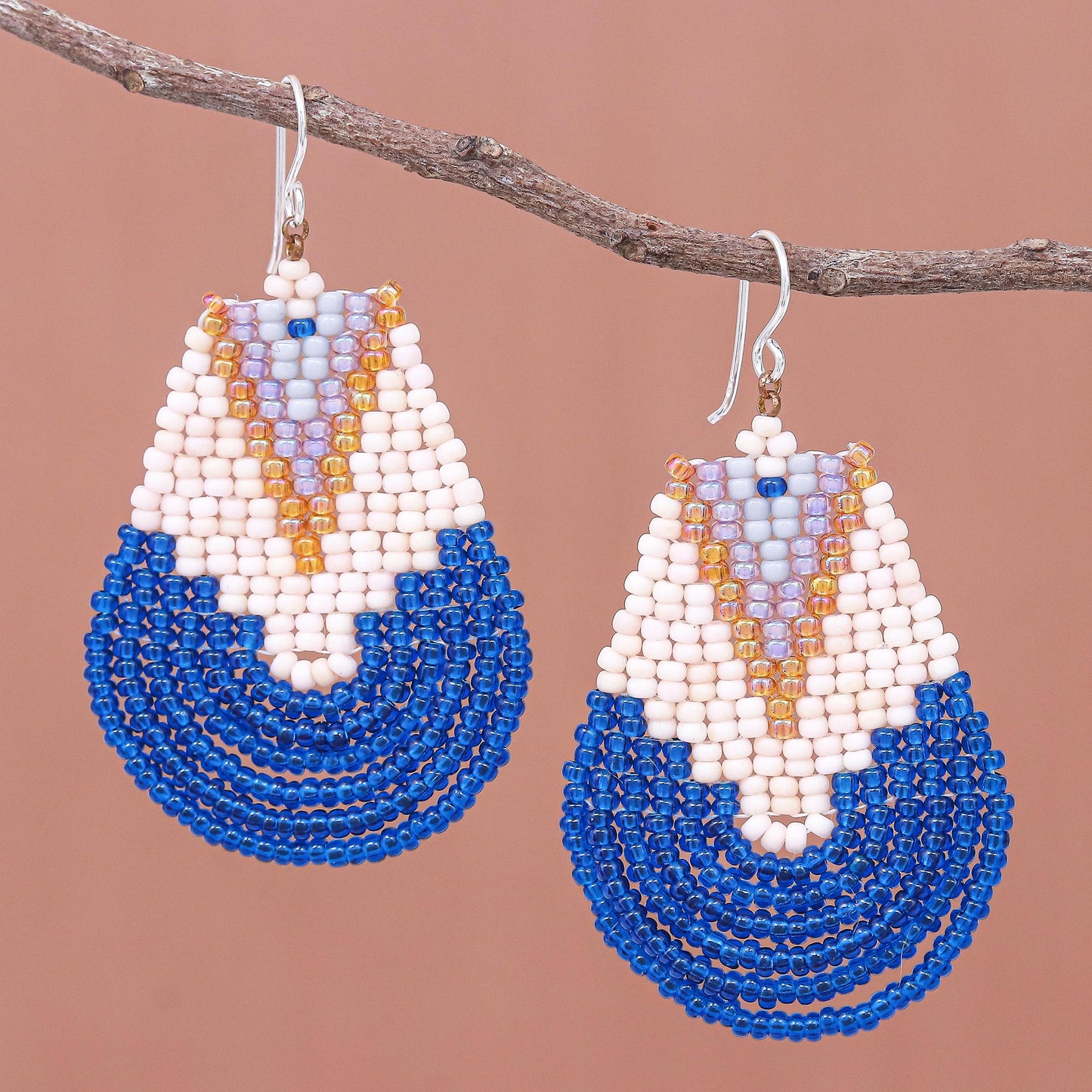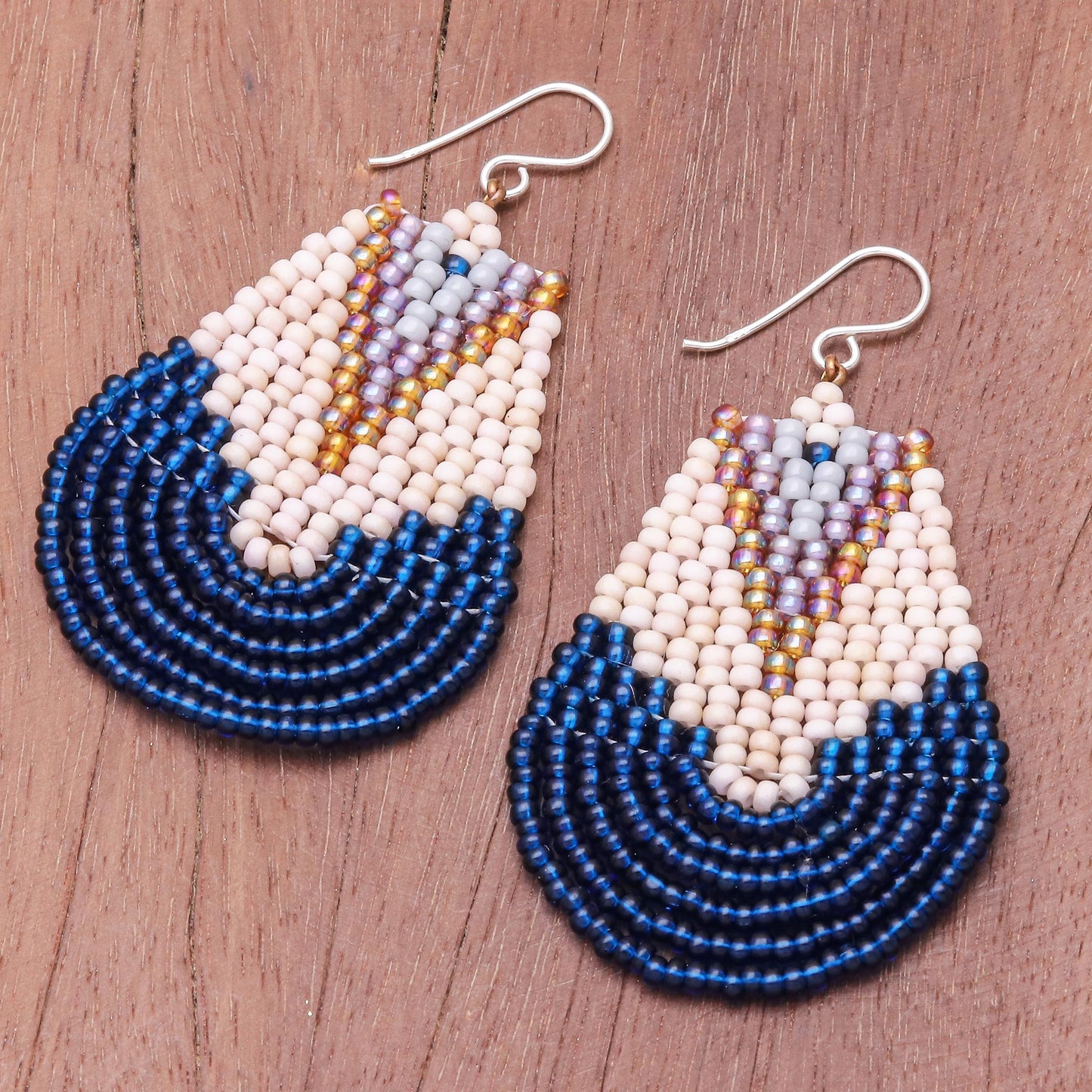 Thai Moon in Blue Handcrafted Glass Bead Dangle Earrings
