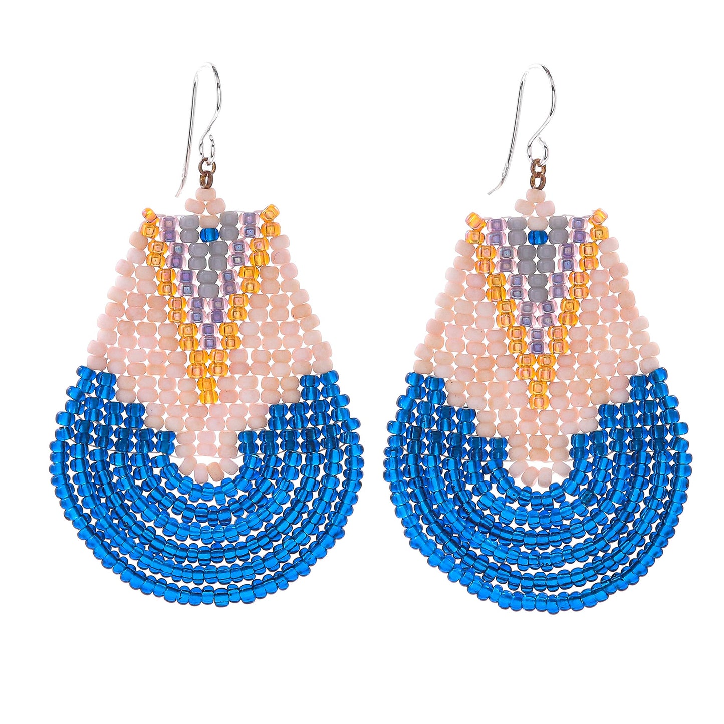 Strands of hand-strung glass seed beads drape from sterling silver ear wires in these dangle earrings presented by Thailand's Siriporn. Various beading techniques are showcased in these generously sized earrings.